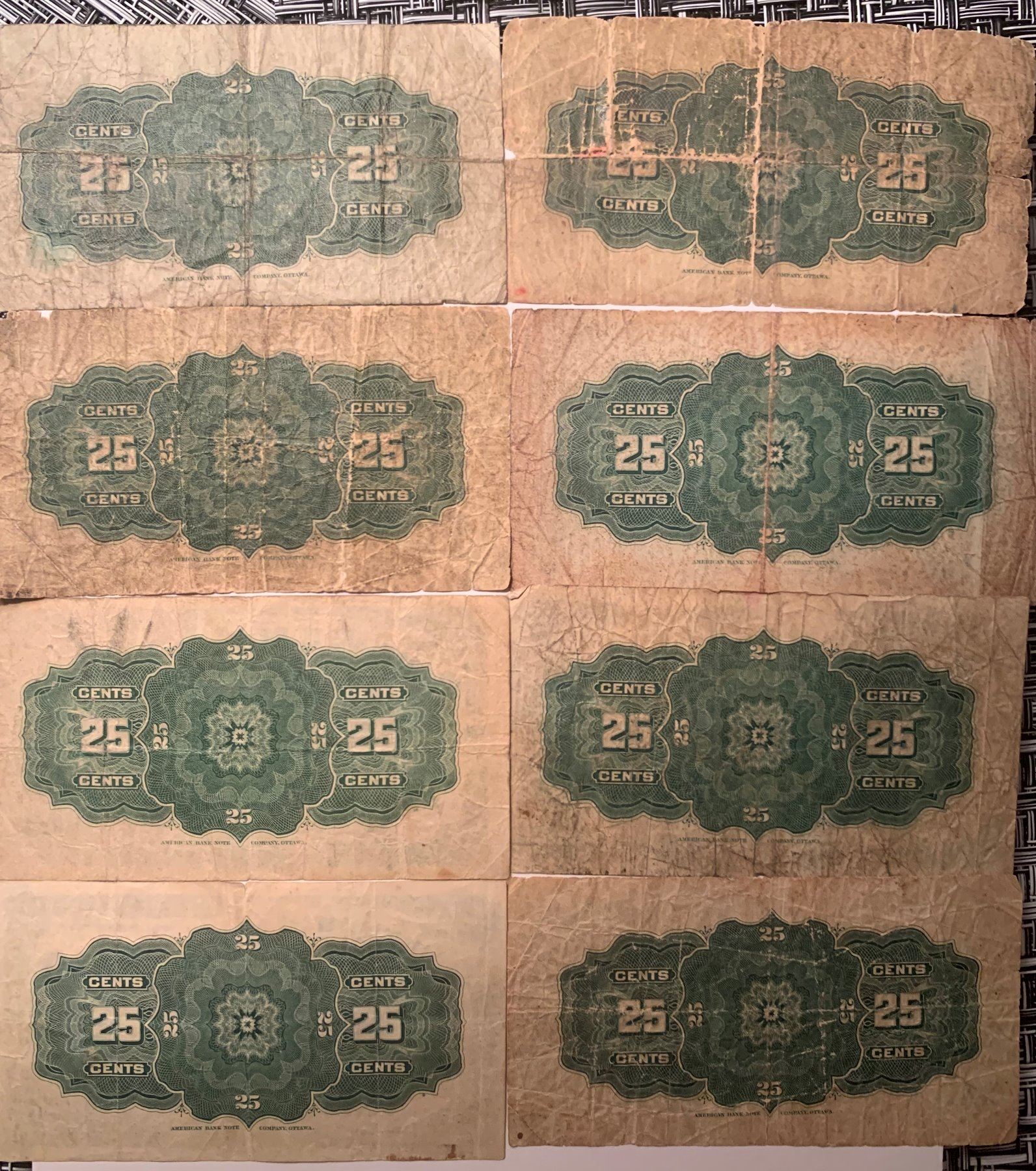 Lot of 8 Canada 25 cent 1900 Dominion of Canada 25c Shinplaster