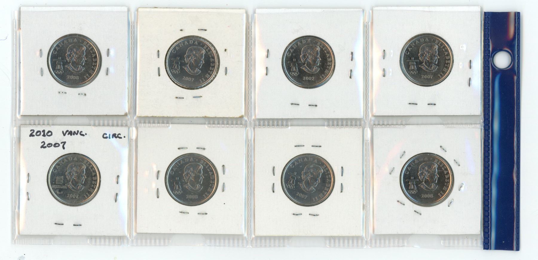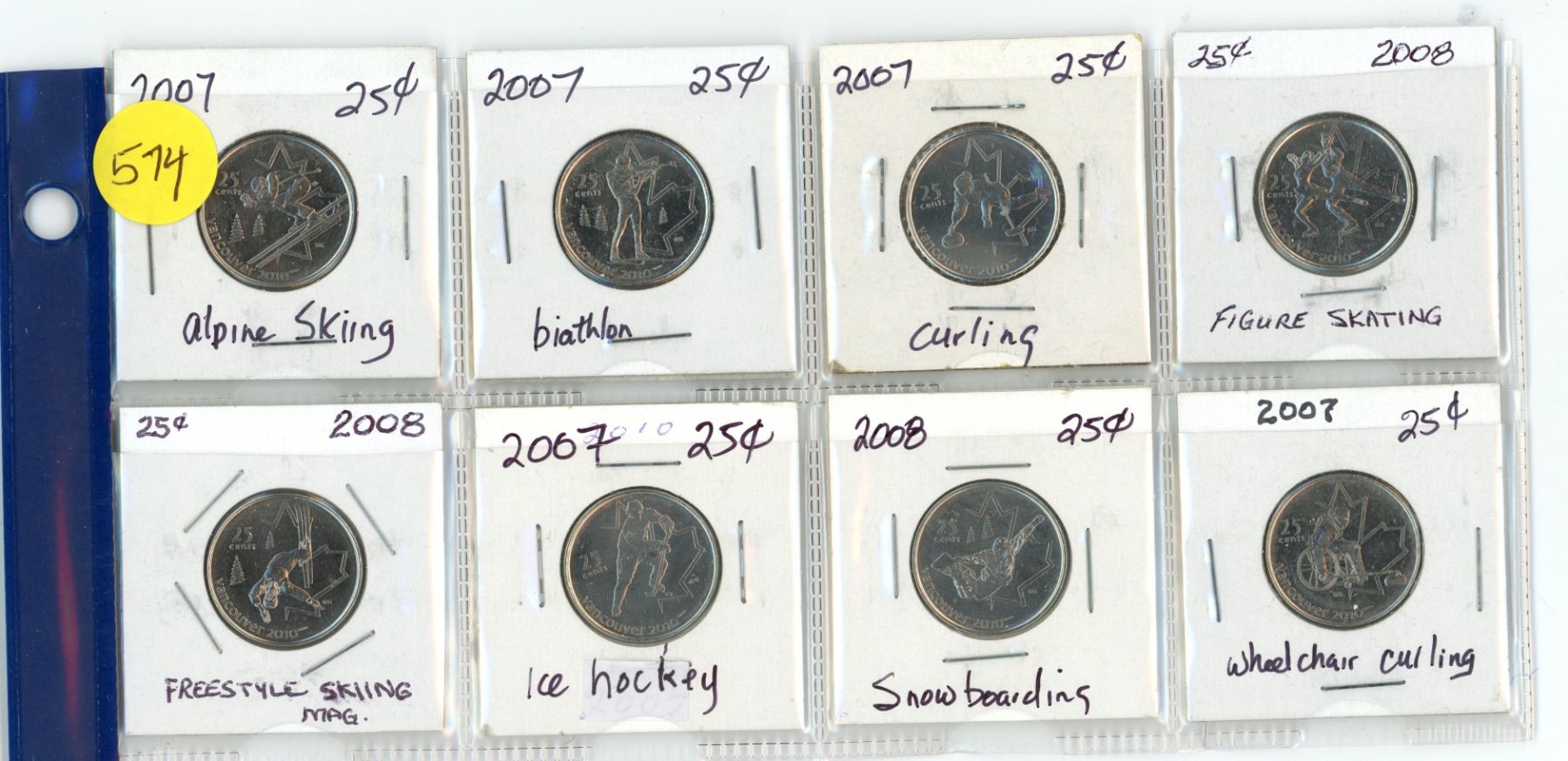 Lot of 8 Canadian quarters- (2007 and 2008) - Alpine skiing, biathlon, curling , figure skating , freestyle skiing , and ice hockey
