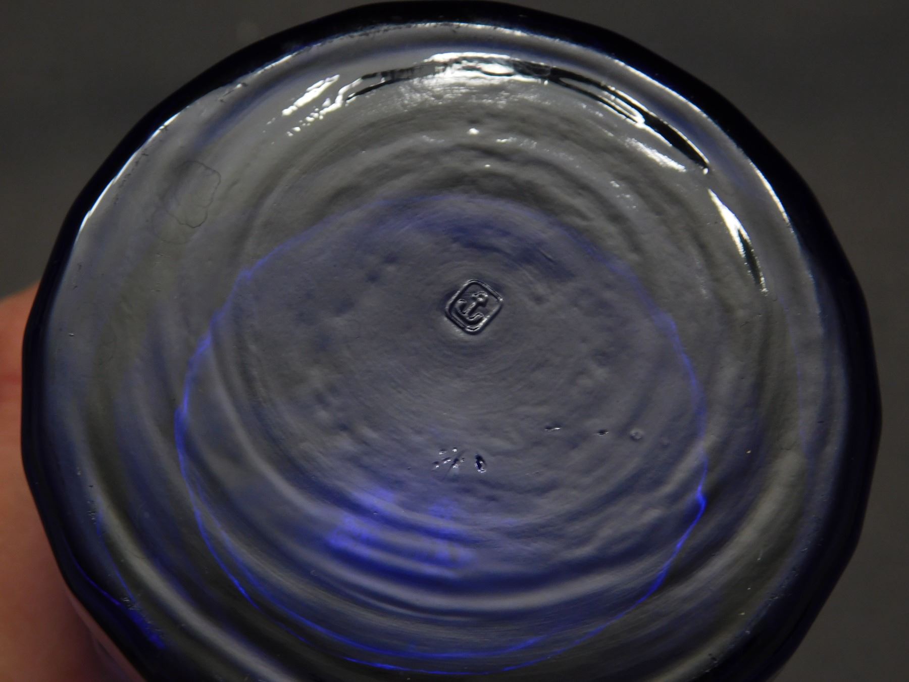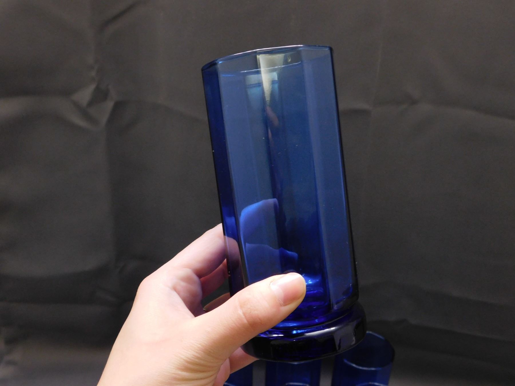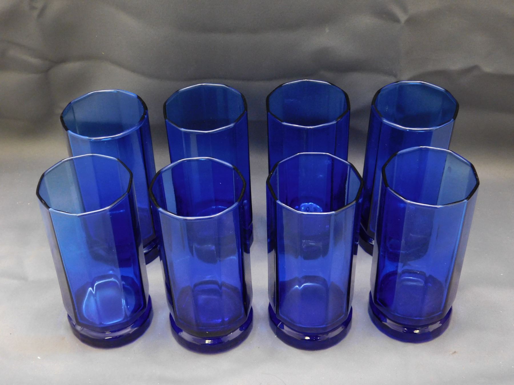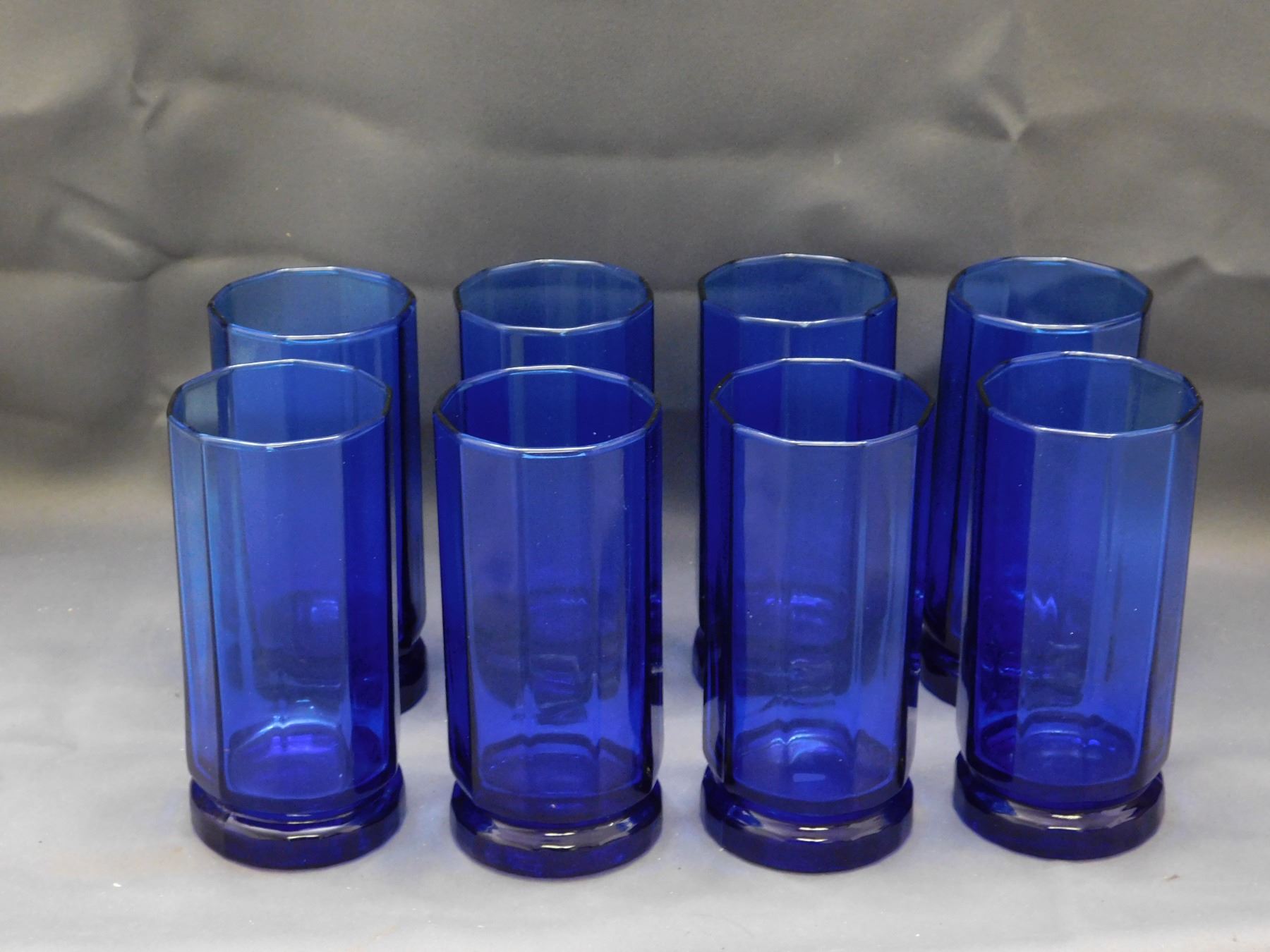 Lot of 8 Cobalt Blue Anchor Hocking Tall Double Rocks Glasses