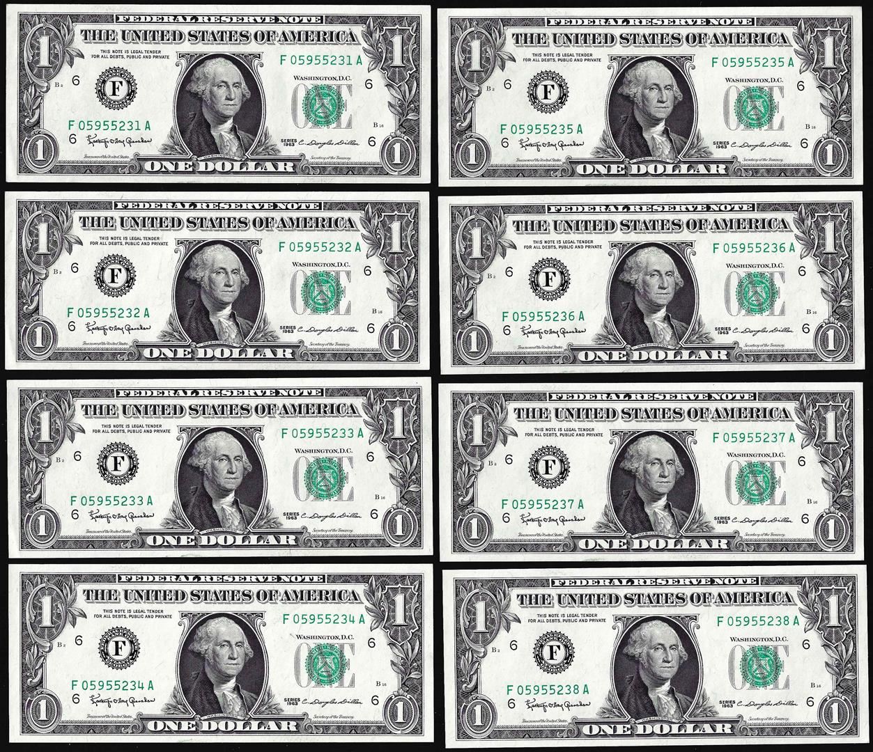 One Lot of (8) Consecutive 1963 $1 Federal Reserve Notes Atlanta.