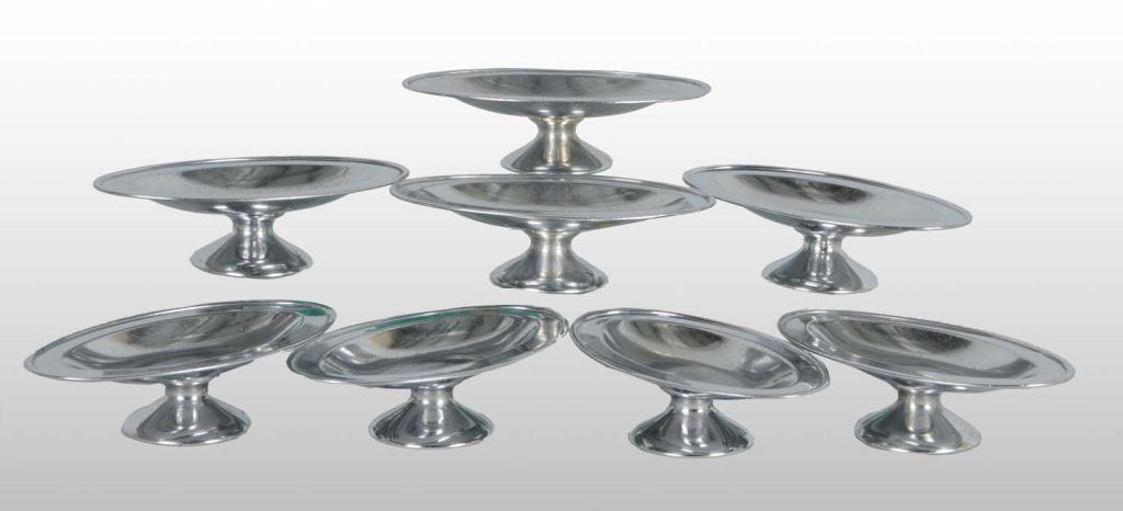 Description Circa 1920s. Chrome-plated. Medium to heavy wear with small scratches. Condition (7.5, Very Good). Size All: 8" W.