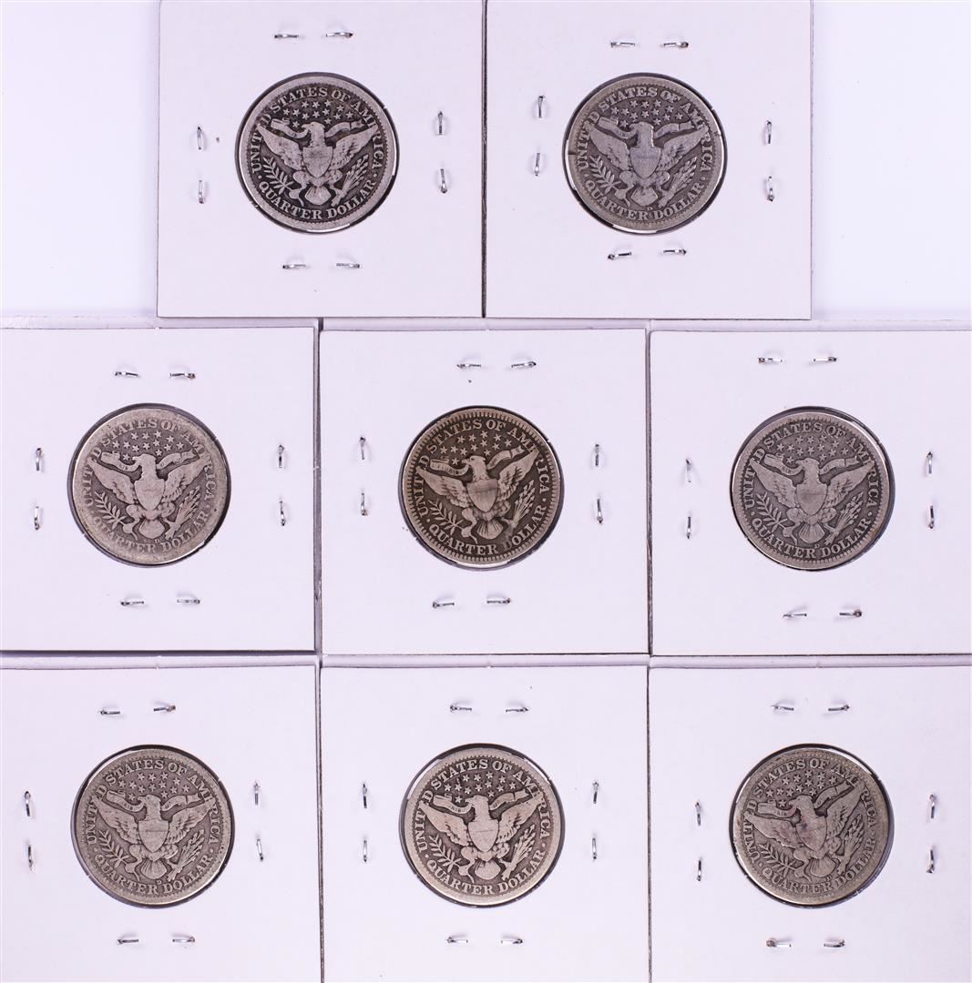 One Lot of (8) Miscellaneous Date Barber Quarter Coins.