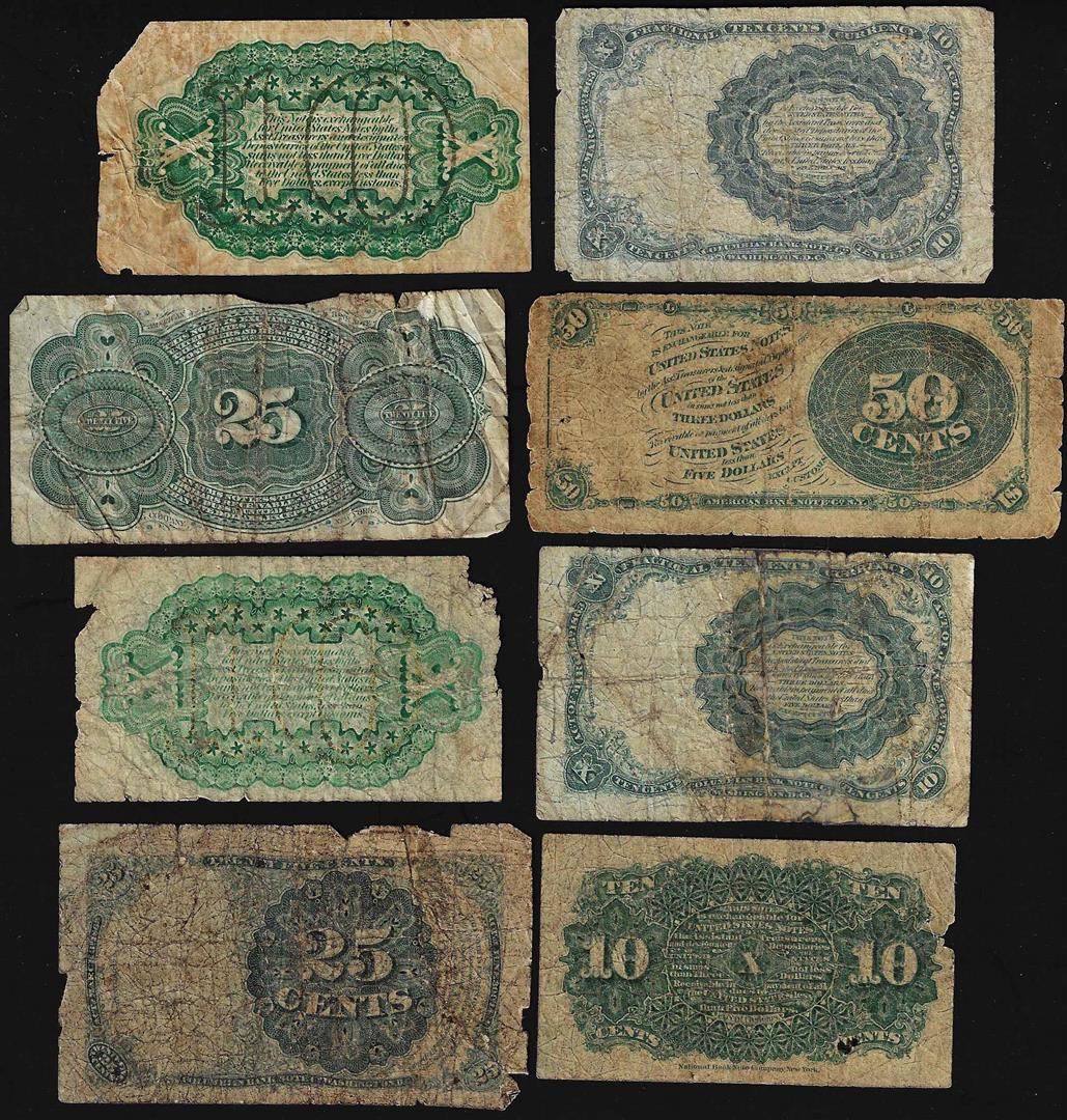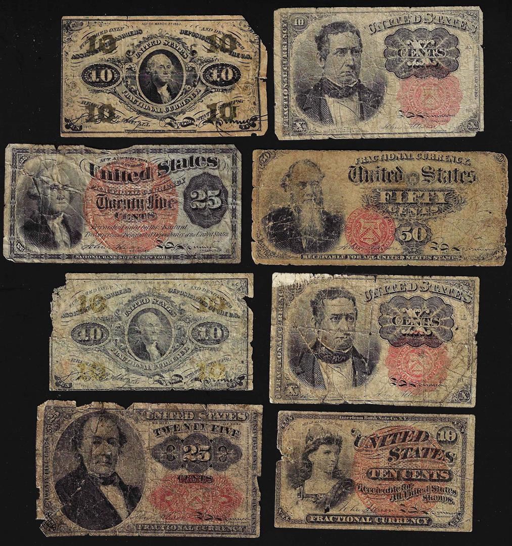 One Lot of (8) Miscellaneous Fractional Currency Notes.