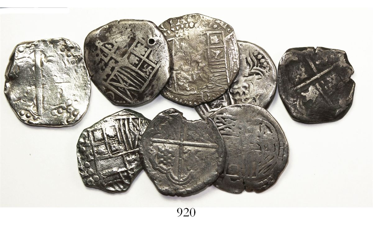 Lot of 8 Potosi, Bolivia, cob 4 reales, Philip II through Philip IV, various assayers (where visible
