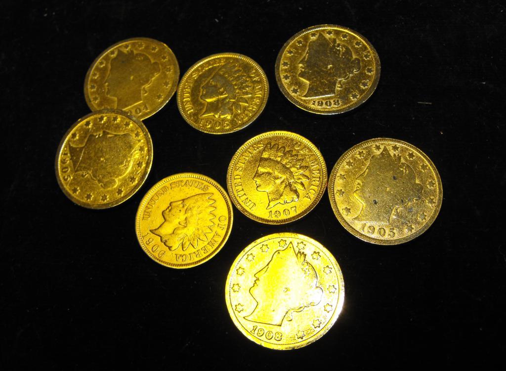 When introduced in 1883, Liberty Head nickels bore a large roman numeral V (5) on the reverse but without the word CENTS. The obverse design was so similar to that of $5 gold pieces that con artists gold-plated the nickels and successfully passed many of them off as $5 gold coins!