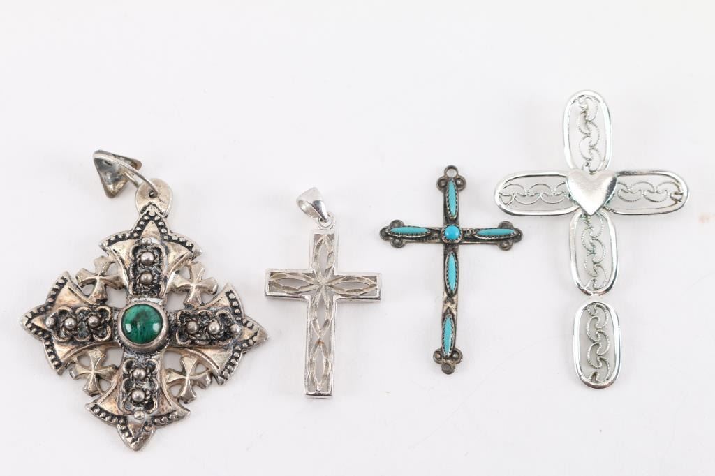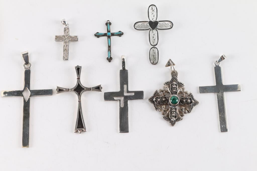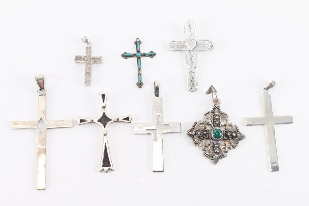8 Sterling silver crosses measuring 1 1/2" to 3".