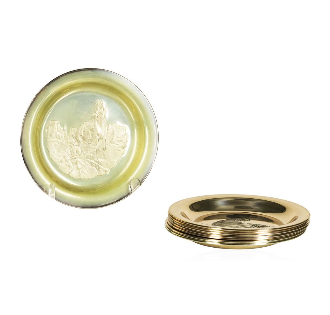 This lot includes the following eight limited edition plates: One (1) "The Carolers" Norman Rockwell plate, one (1) 1972 Thanksgiving Plate, three (3) Along the Brandy Wine 1972 by James Wyeth plates, one (1) Horizon's West by R. Baldwin plate, and two (2) 1972 Mother's Day plates. Weighs a total of 1,800 grams.