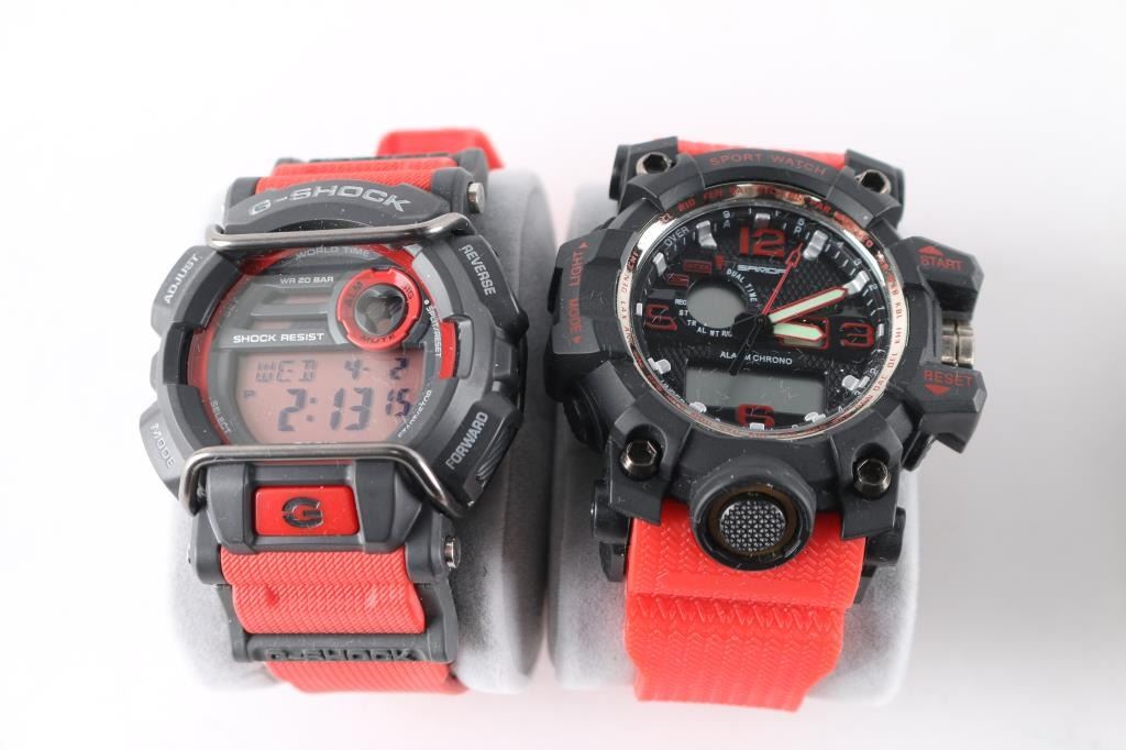 Includes: Lige Chronograph (gold tone); Samoa digital watch; G-Shock GD-400; Invicta Reserve 0816; Diesel chronograph DZ-4203; Exponi 3237; Megir 2097; Casio SGW-1000.