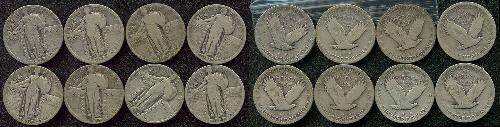 Lot of 8 different Standing Liberty Quarters G+; Nice lot with a few mintmarked!