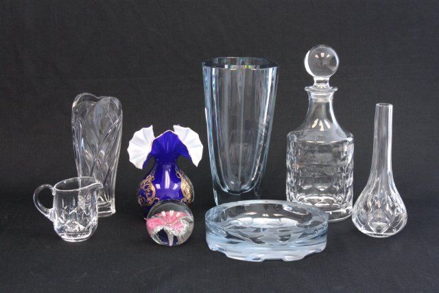 Includes: 4 vases, decanter, paperweight, ashtray, creamer. Some pieces signed Lenox, Atlantis & other various sizes. From an estate located at 860 5th Ave. NYC. Please read our terms of sale.
