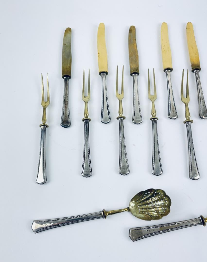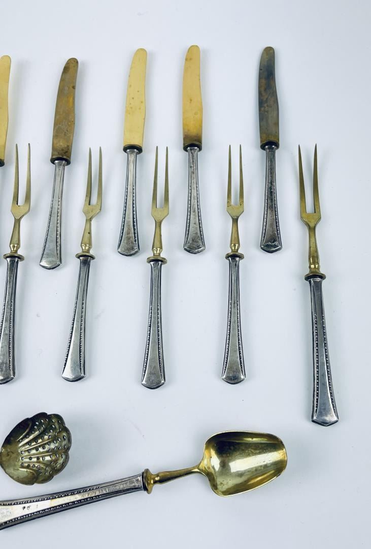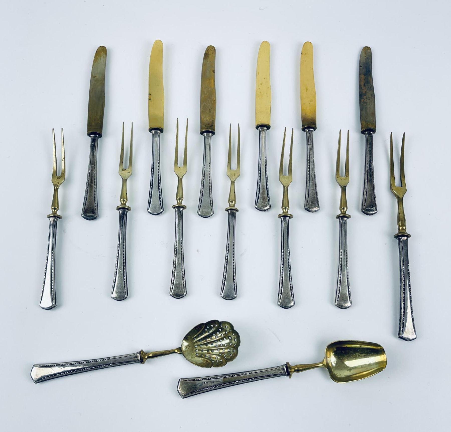 Nice set. Weighted Silver handles with Gold washed tips. Silver content is .800 and not sterling.