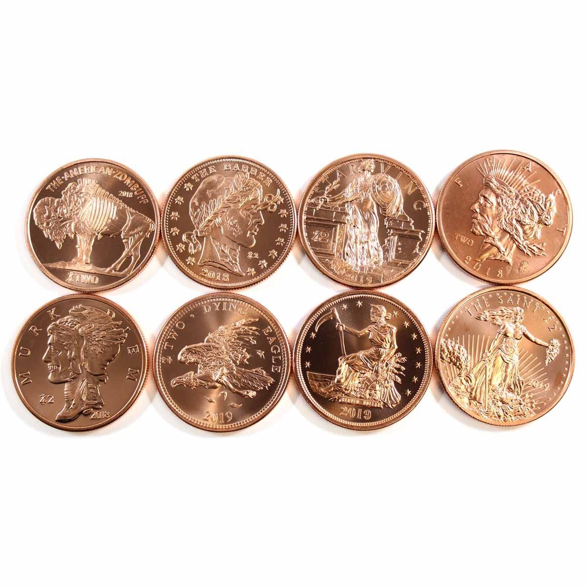 Lot of 8x Different Zombucks Design .999 Fine Copper Rounds. 8pcs (Tax Exempt)