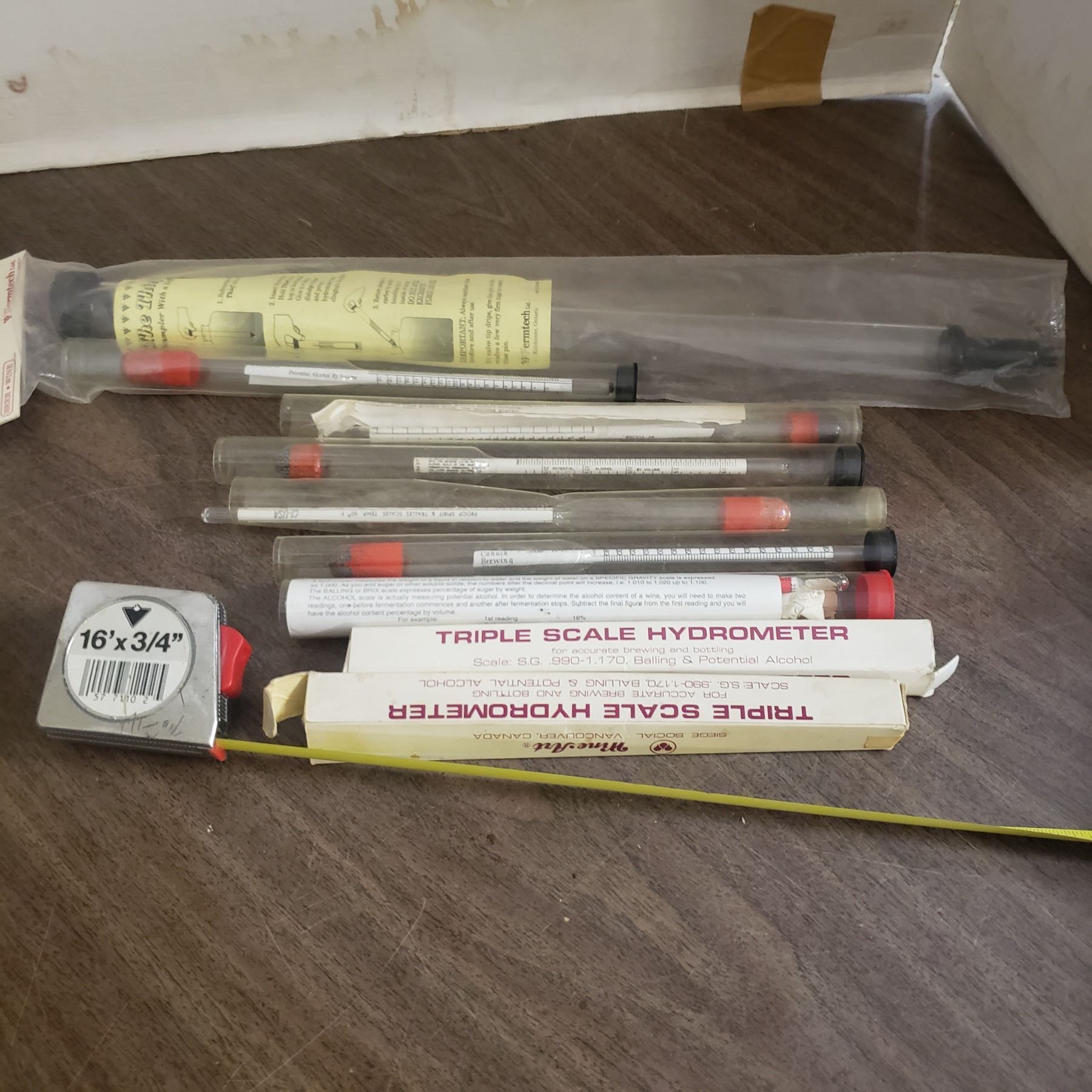 Lot of 9 Alchohol Hydrometers for distilled spirits