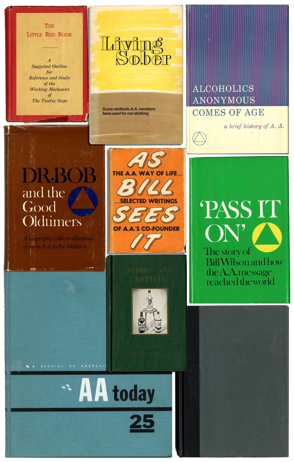 Nice collection of nine Alcoholics Anonymous books, all first editions. Collection includes: (1) ''As Bill Sees It: The A.A. Way of Life'' hardcover first edition, fifth printing. Alcoholics Anonymous World Services, Inc.: New York: 1974; (2) ''Living Sober'' softcover first edition, first printing. Alcoholics Anonymous World Services, Inc.: New York: 1975; (3) ''Stools and Bottles'' first edition, fifth printing. Coll-Webb Co.: Minnesota: 1965; (4) ''The Little Red Book'' hardcover first edition, 18th printing in original dustjacket. Coll-Webb Co.: Minnesota: 1963; (5) ''Pass It On'' hardcover first edition, first printing with original dustjacket. Alcoholics Anonymous World Services, Inc.: New York: 1984; (6) ''Twelve Steps and Twelve Traditions'' hardcover first edition, fifth printing. Alcoholics Anonymous World Services, Inc.: New York: 1962; (7) ''Dr. Bob and the Good Oldtimers'' hardcover first edition, first printing in original dustjacket. Alcoholics Anonymous World Services, Inc.: New York: 1980; (8) ''Alcoholics Anonymous Comes of Age'' hardcover first edition, first printing in original dustjacket. Alcoholics Anonymous Publishing, Inc.: New York: 1957; (9) ''AA Today: A Special Publication by the AA Grapevine Commemorating the 25th Anniversary of Alcoholics Anonymous'' hardcover first edition, first printing. Cornwall Press: New York: 1960. Each book is in very good to near fine condition.