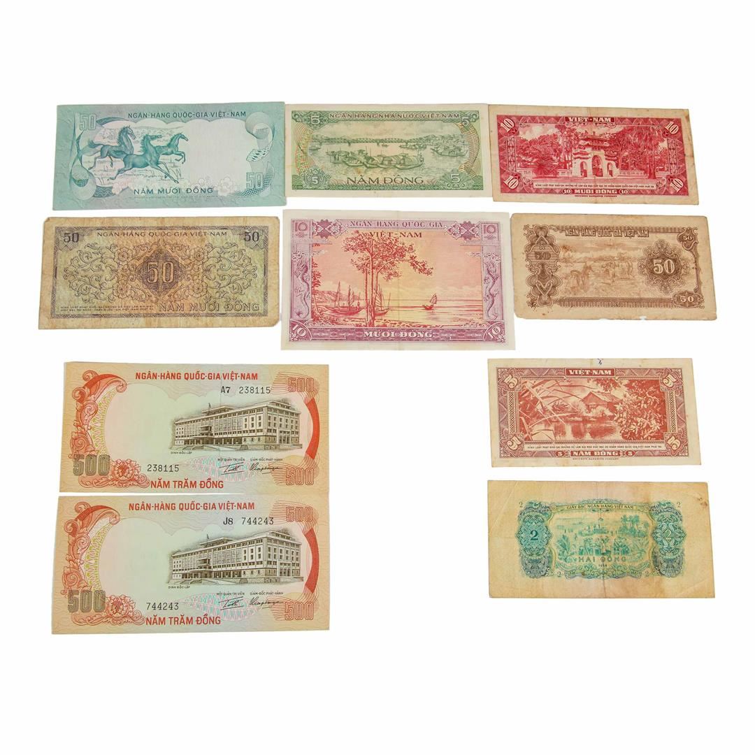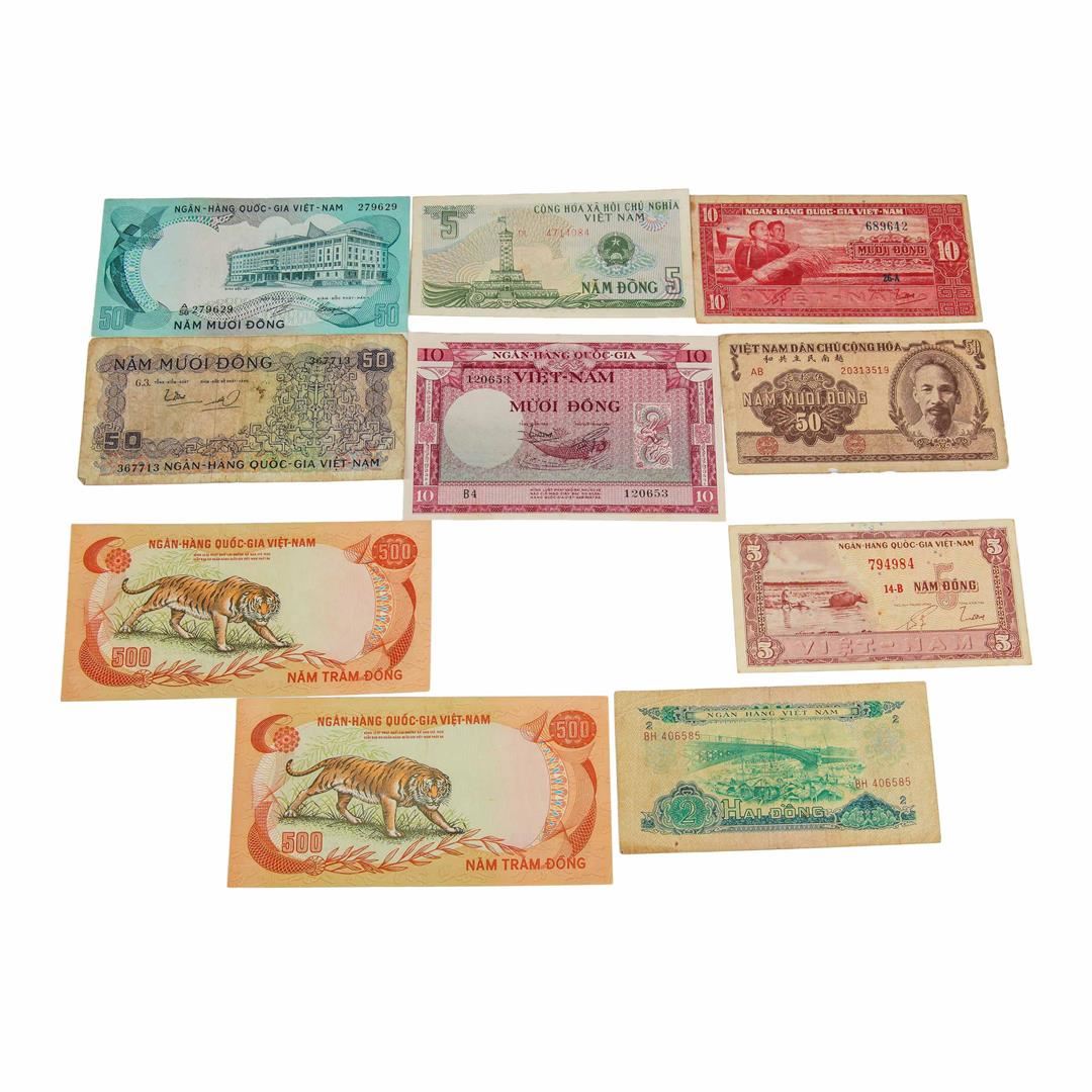 One Lot of (9) Assorted Vietnam Notes.
