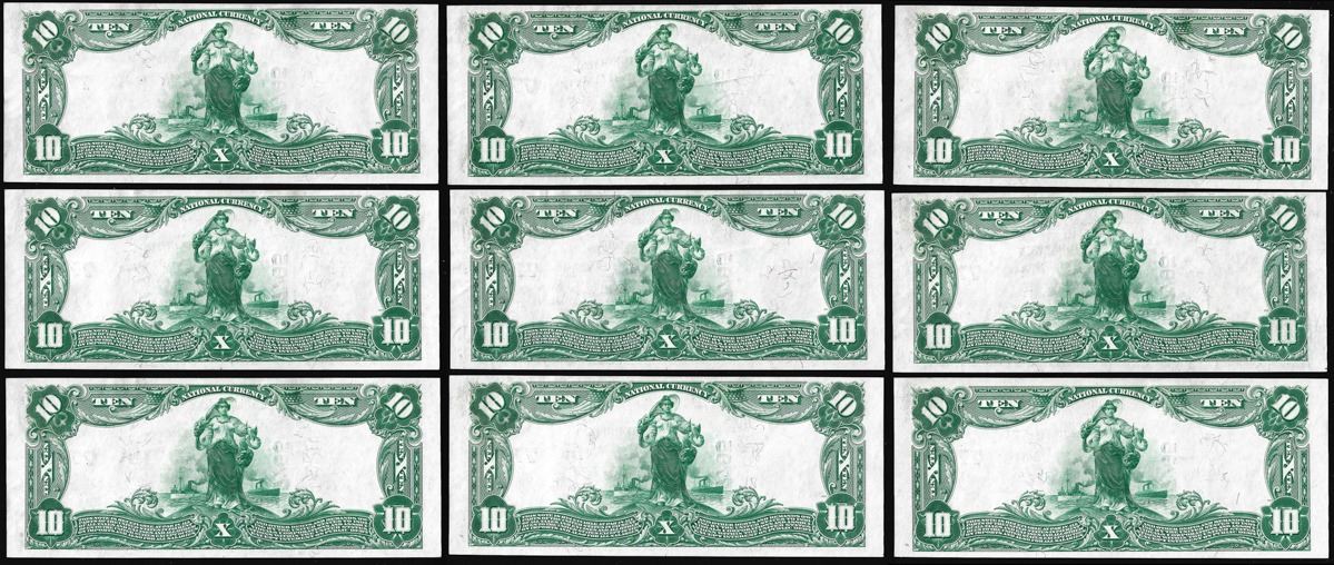 One Lot of (9) Consecutive 1902PB $10 Tiffin, Ohio CH# 7795 National Currency Notes.