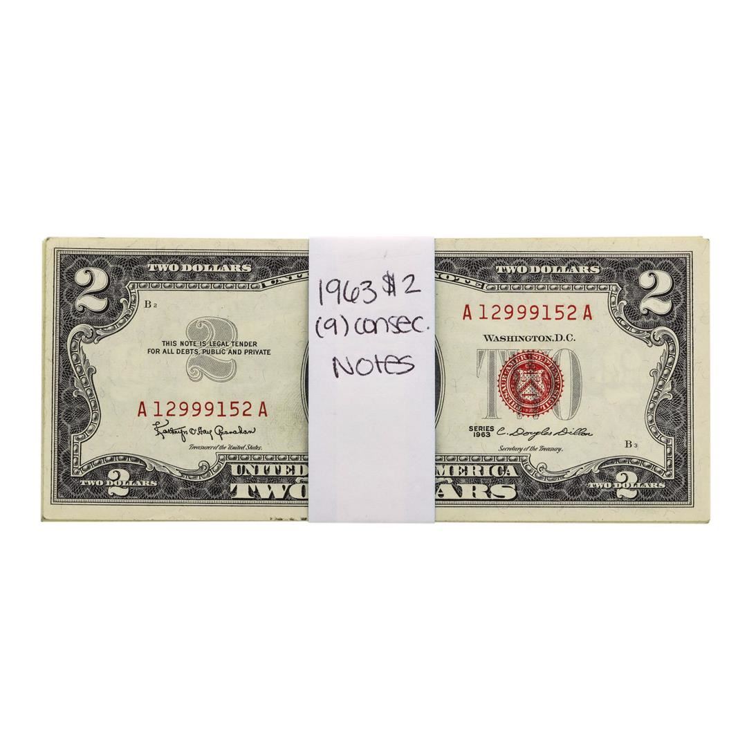 One Lot of (9) Consecutive 1963 $2 Legal Tender Notes.