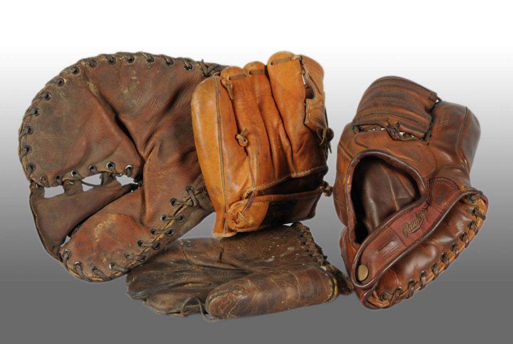 1920s to 1960s. Various gloves from various eras including six fielder's and three catchers mits. Condition (Good - Very Good).