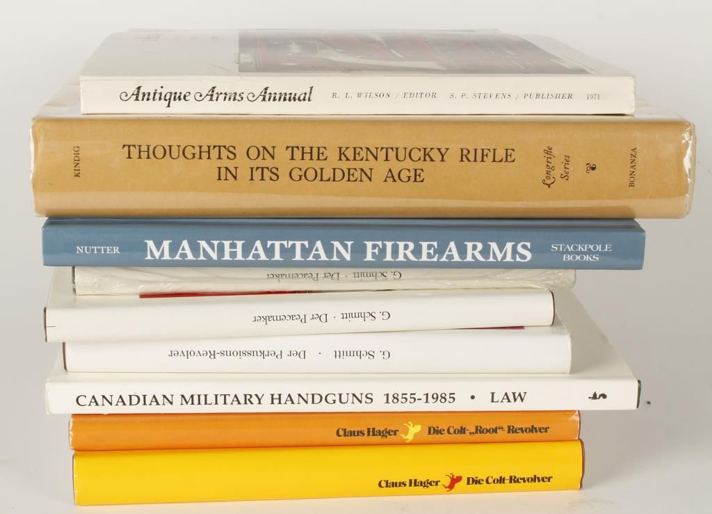 Thoughts on the Kentucky Rifle by Bonanza (retails 150.00), Canadian Military Handguns 1855-195by Law, Die-colt Root and Revolver by Claus Hager, Antique Arms Annual, Manhattan Fireams by Stackpole books, and Der Peacemaker-Revolver-Perkussions all three by Gunter Schmitt.