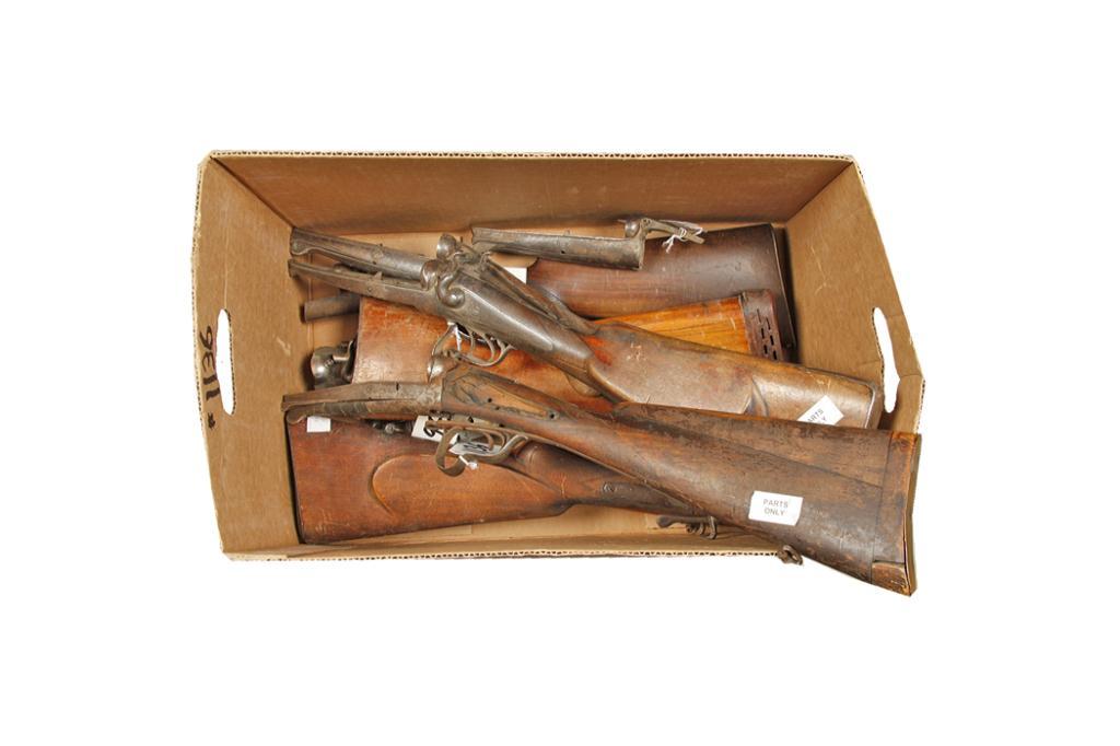 Lot of 9 Husqvarna Shotgun Actions Consists of Husqvarna double barrel shotgun partial receivers for parts, most with stocks attached. Most need a little cleanup. Good parts lot with external hammers, and trigger assemblies.Consists of Husqvarna double barrel shotgun partial receivers for parts, most with stocks attached. Most need a little cleanup. Good parts lot with external hammers, and trigger assemblies.