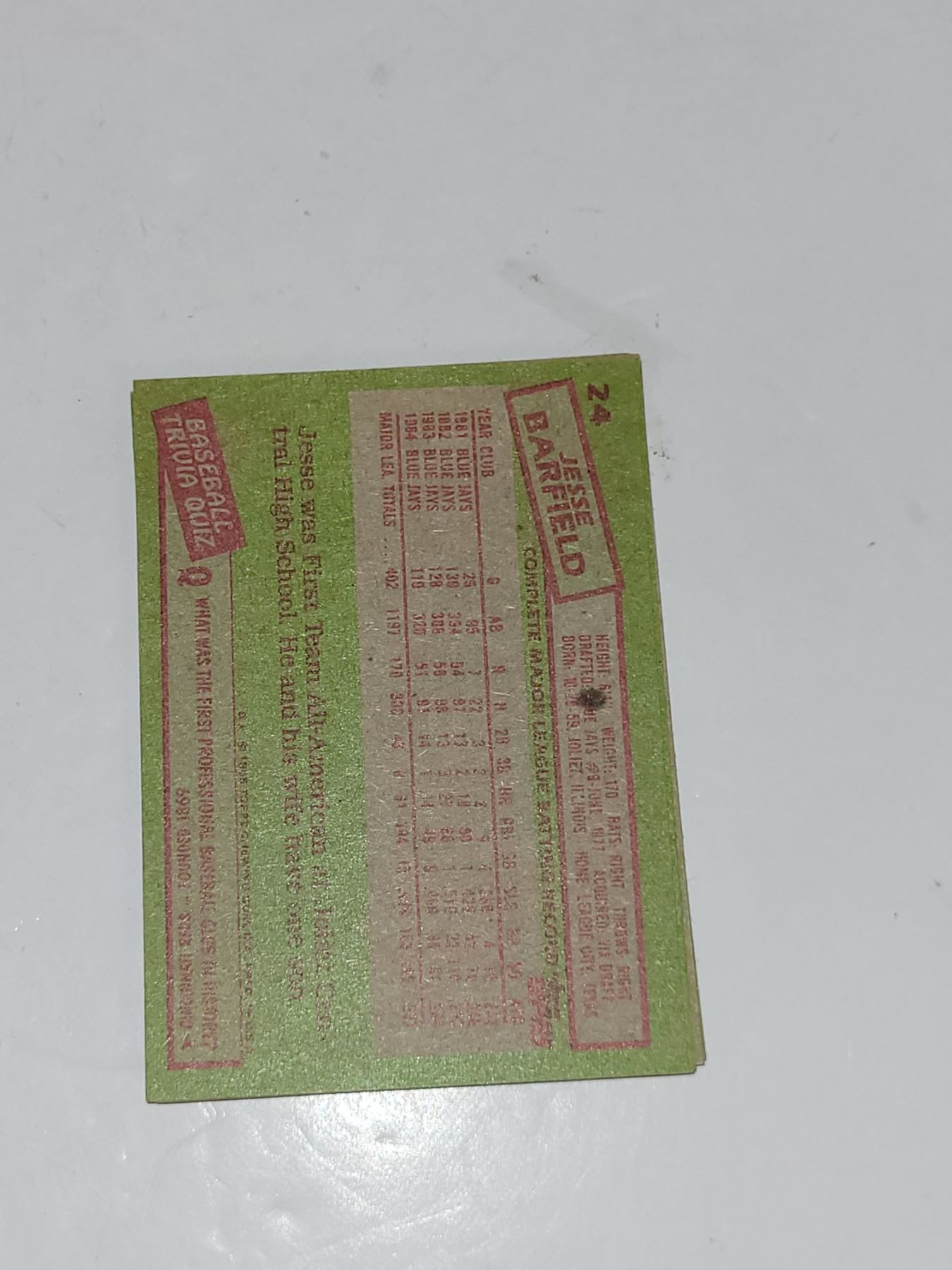 Lot of 9 Jesse Barfield MLB Baseball Cards- Mint