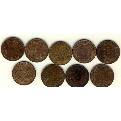 Lot of 9 Large cents; 1902, 1903, 1904, 1905,