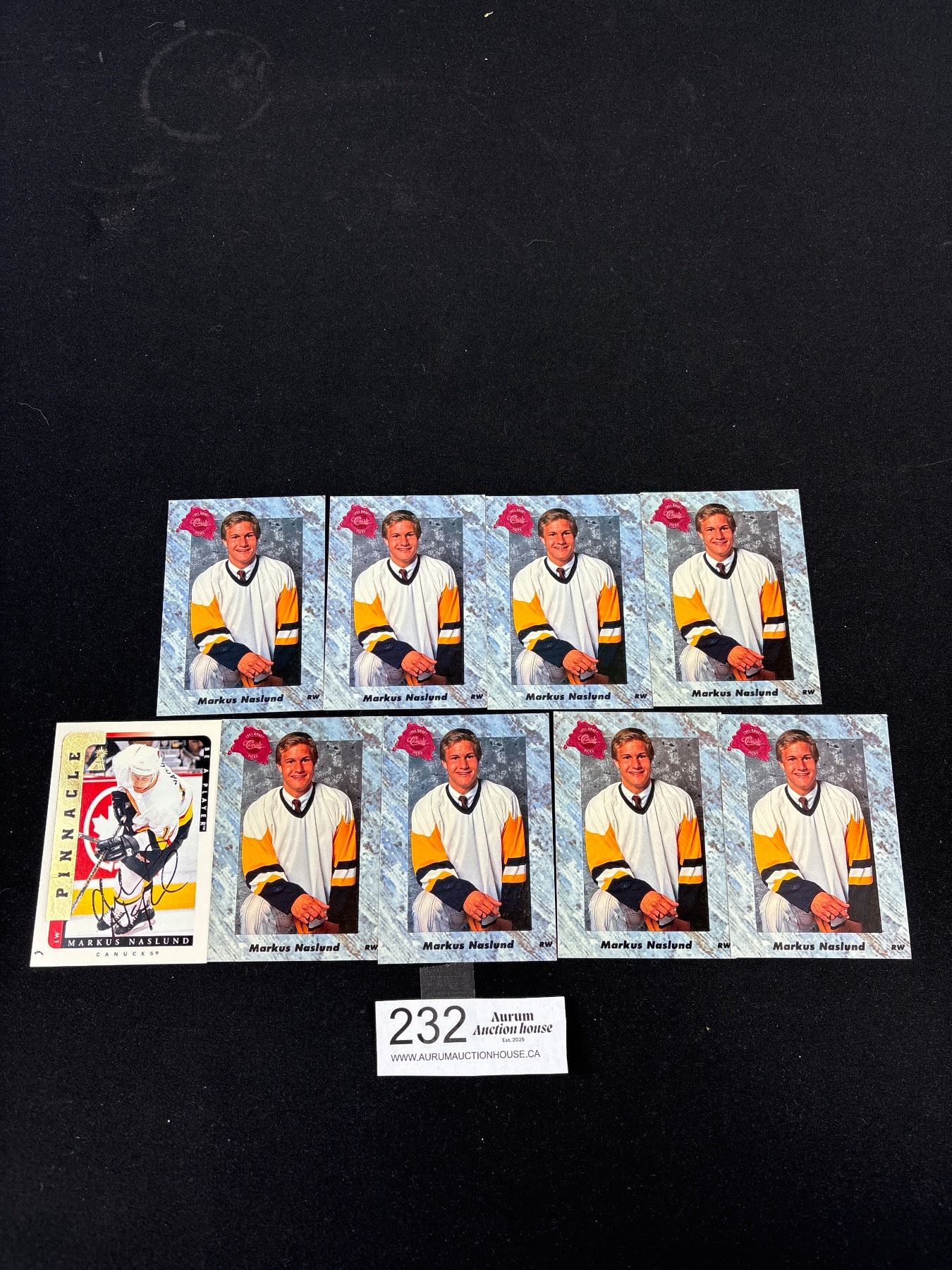 Lot of 9 Marcus Naslund Cards (8 Rookies) (1 Signature Card)