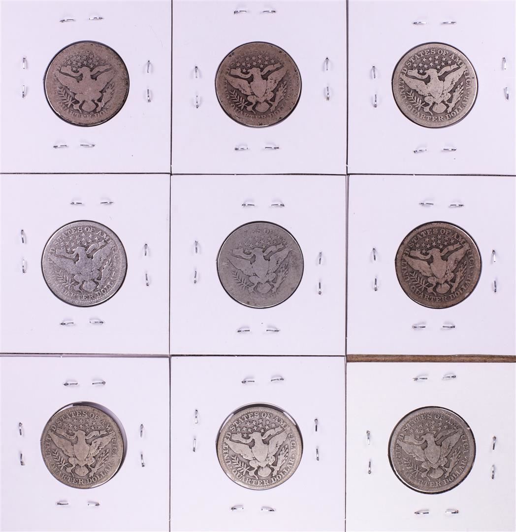 One Lot of (9) Miscellaneous Date Barber Quarter Coins.