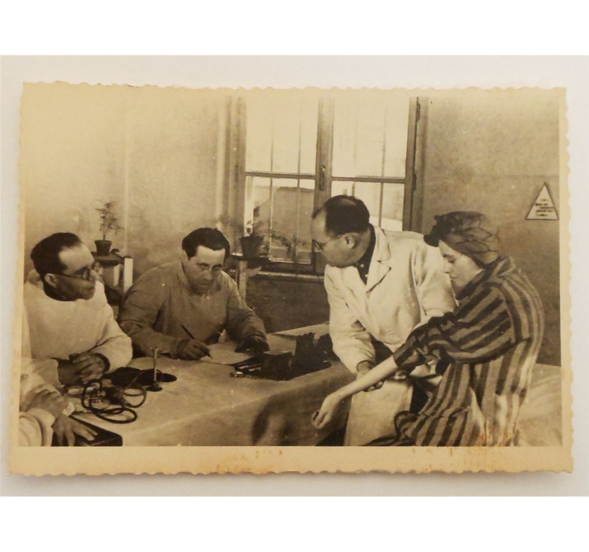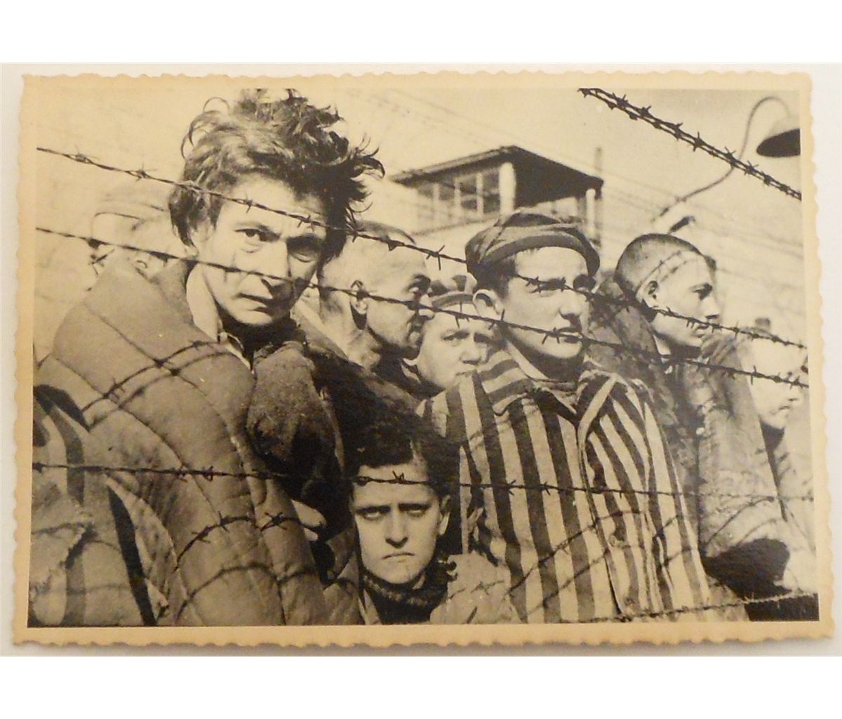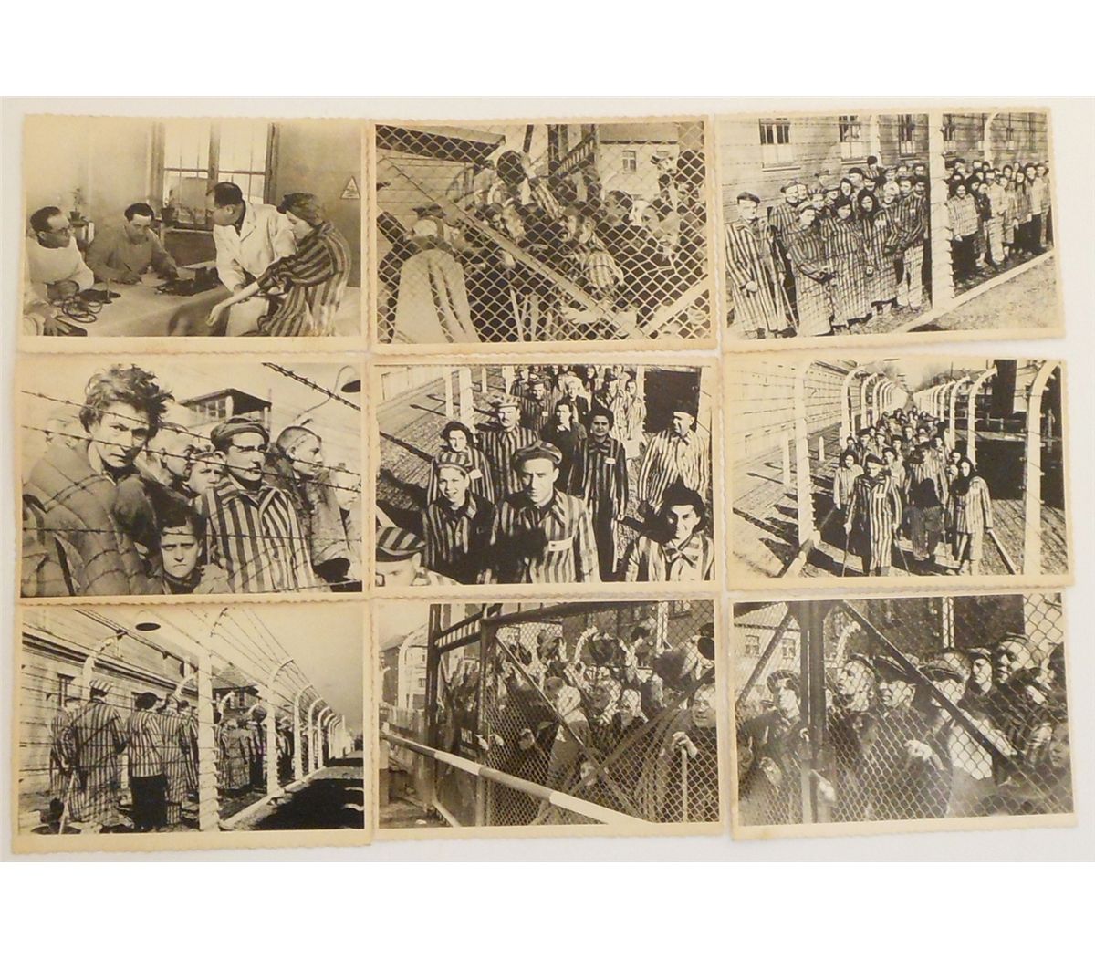 Nine 4 1/2" X 3 1/4" black and white photos from the Ukrainian Archives of Russian Troops Liberating Concentration Camps. Each photo is stamped, numbered, and signed.