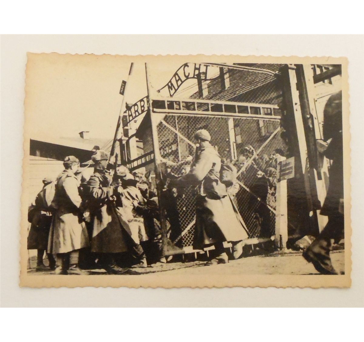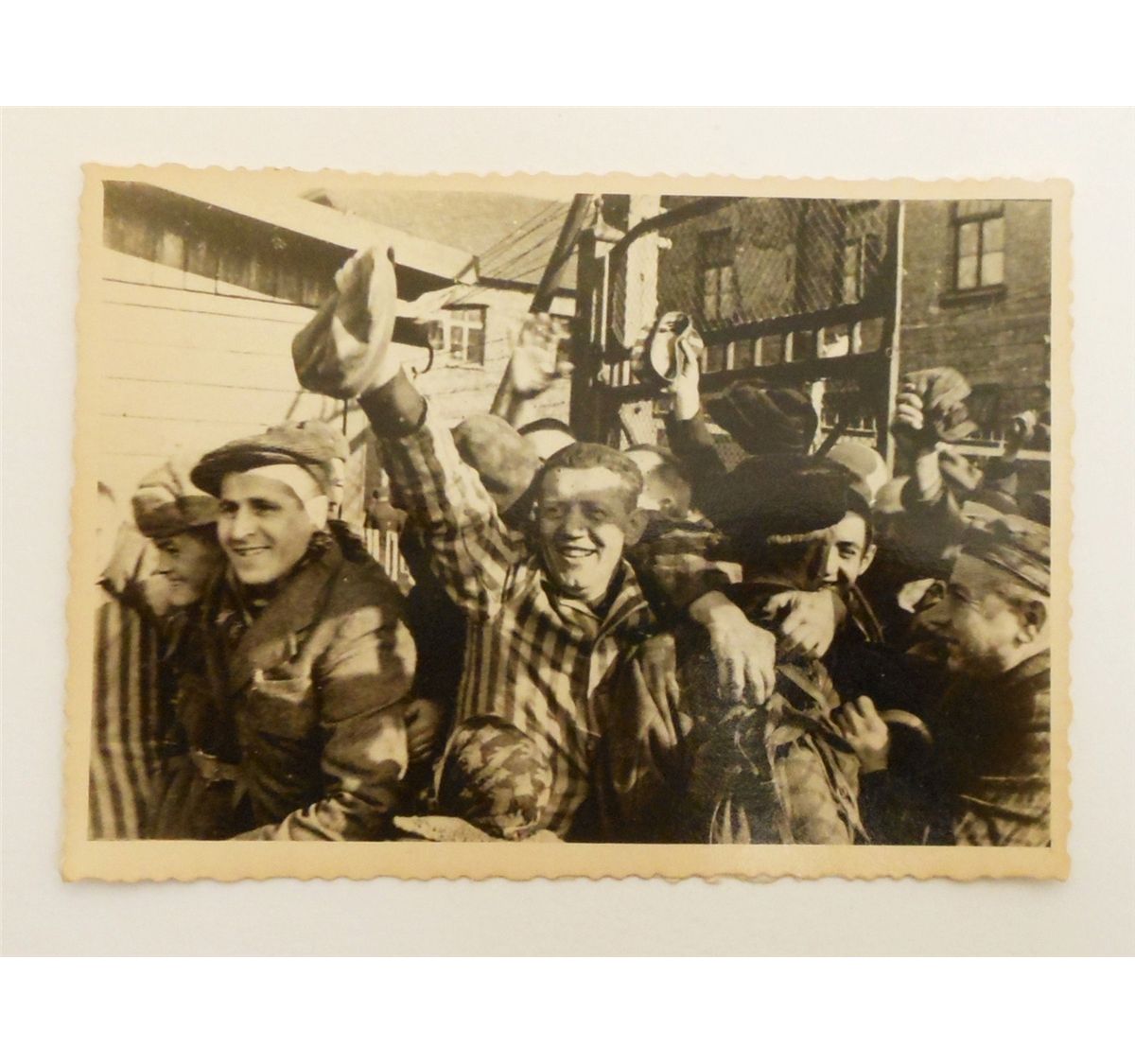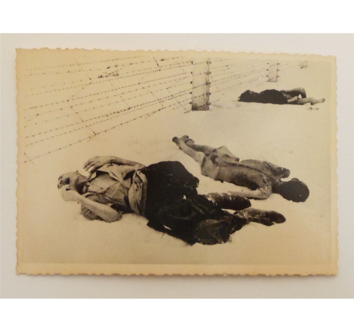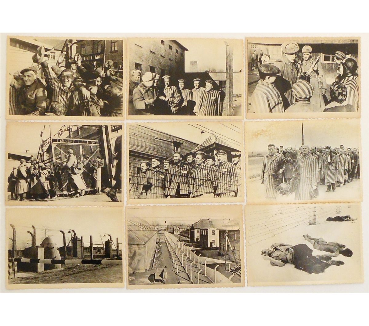 Nine 4 1/2" X 3 1/4" black and white photos from the Ukrainian Archives of Russian Troops Liberating Concentration Camps and Atrocities. Each photo is stamped, numbered, and signed.