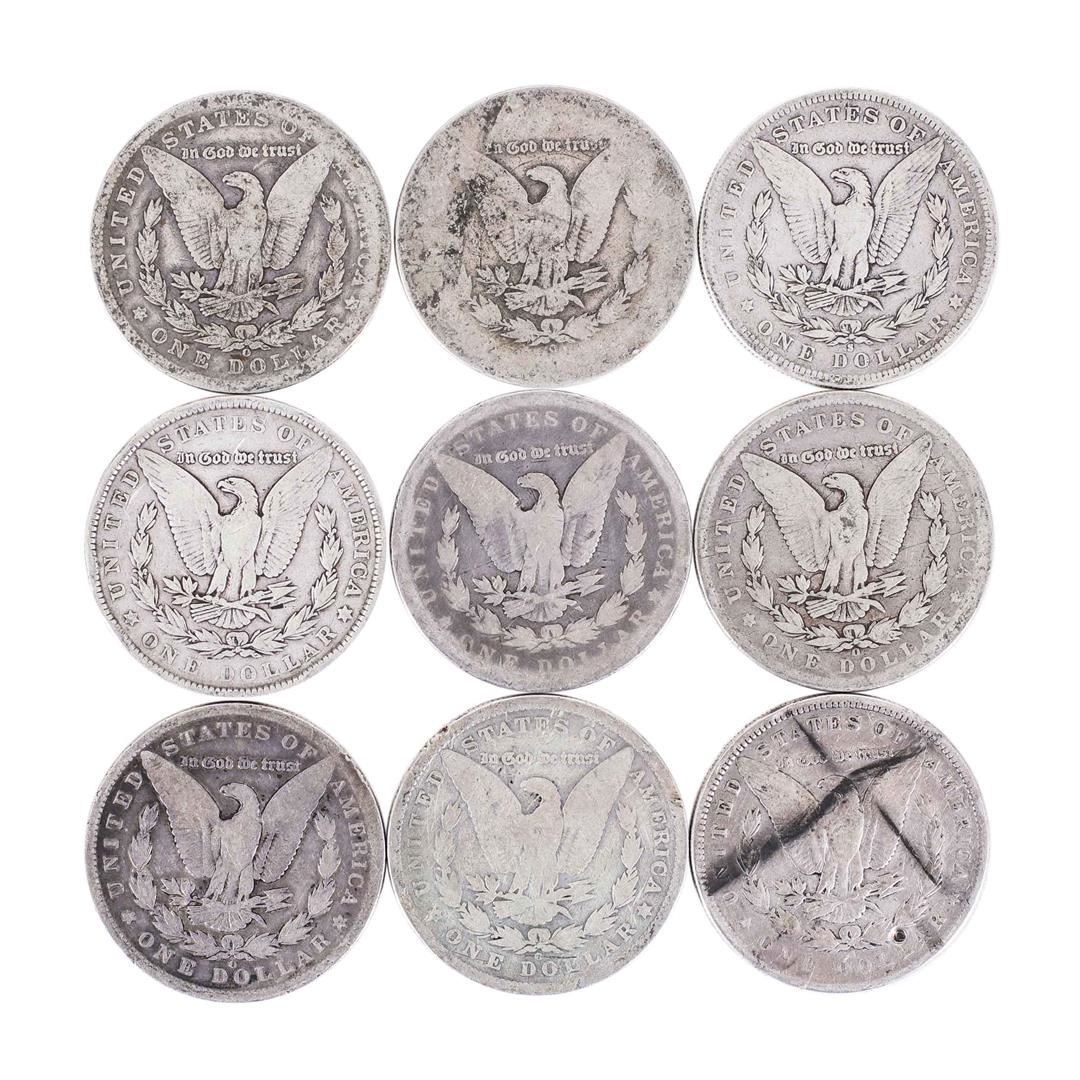 One Lot of (9) Pre 1921 $1 Morgan Silver Dollar Coins.