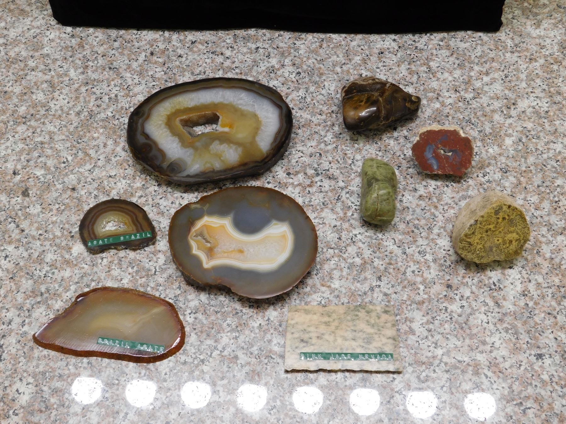 Lot of 9 Rock Specimens Brazil Agate, Pink Jade, Assorted