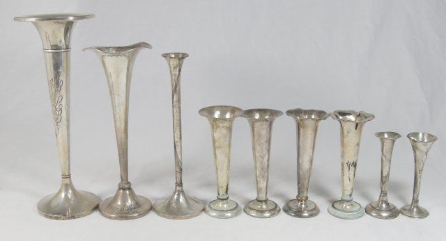 Tallest approx. 9 3/4" H. All weighted. 4 silverplate. (4162) Some dents.