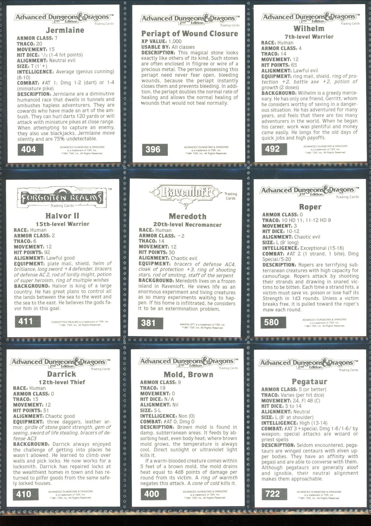 Lot of 9 Various Advanced Dungeons & Dragons Collector Cards