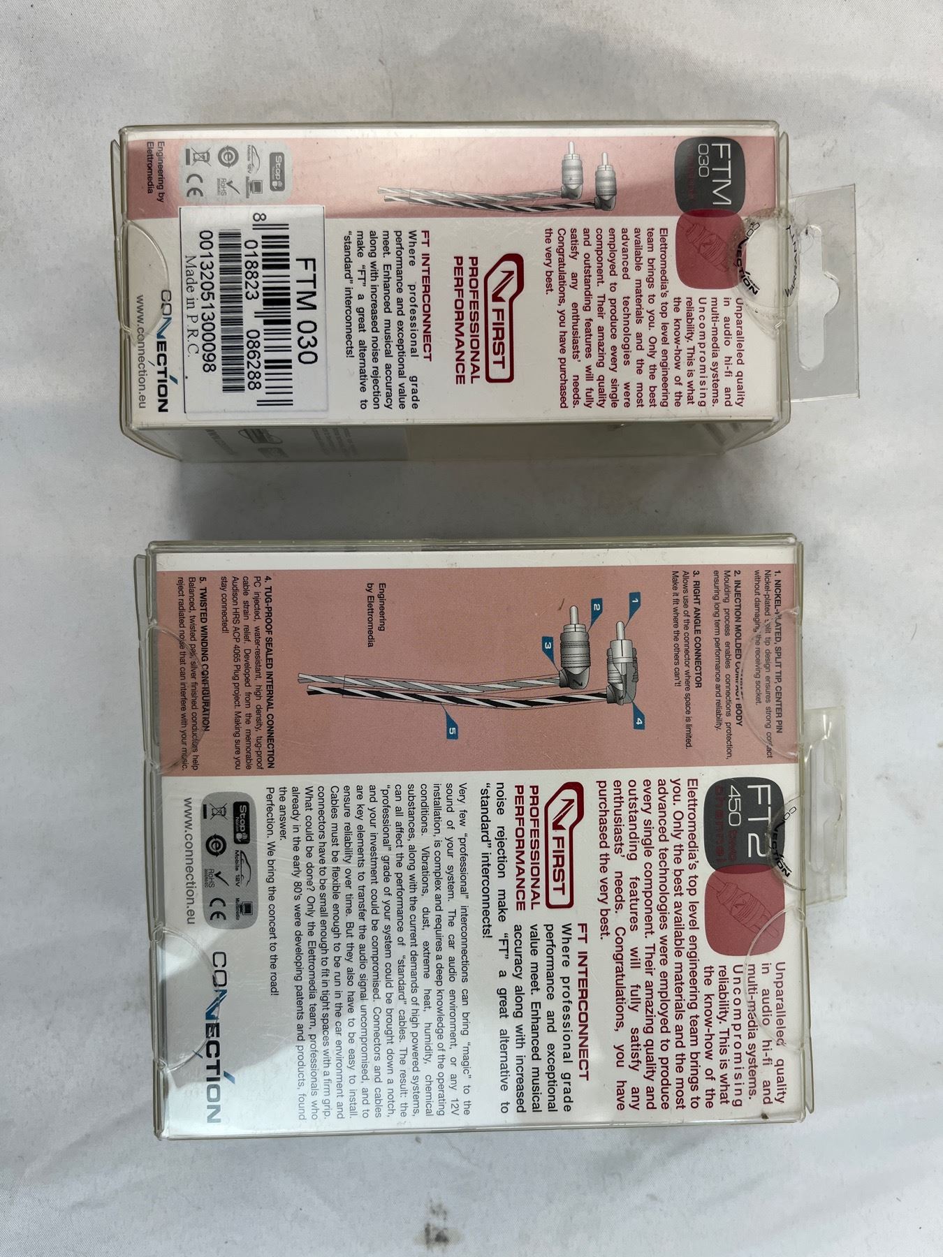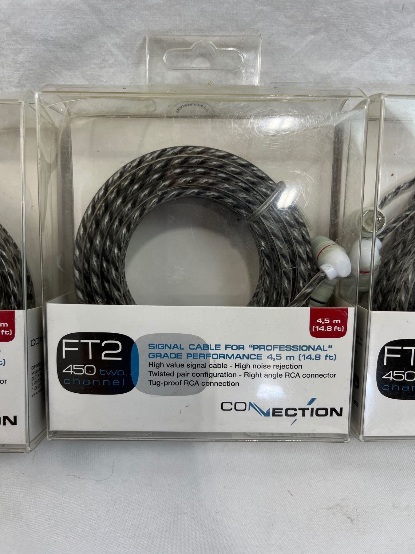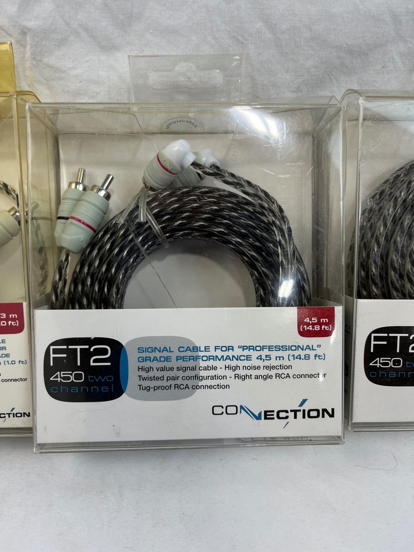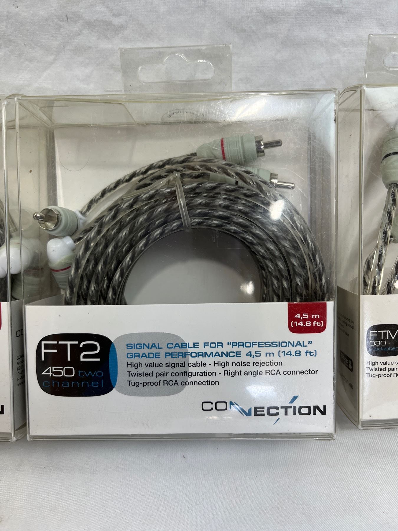 6qty ftm-30 y adapter 1 foot length female to two male. 3qty 14.8ft FT2 450 two channel right angle RCA connector cables.