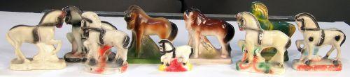 Lot of 9 smaller Chalk Horses from a Carnival ; 2 are book-ends great decorator items