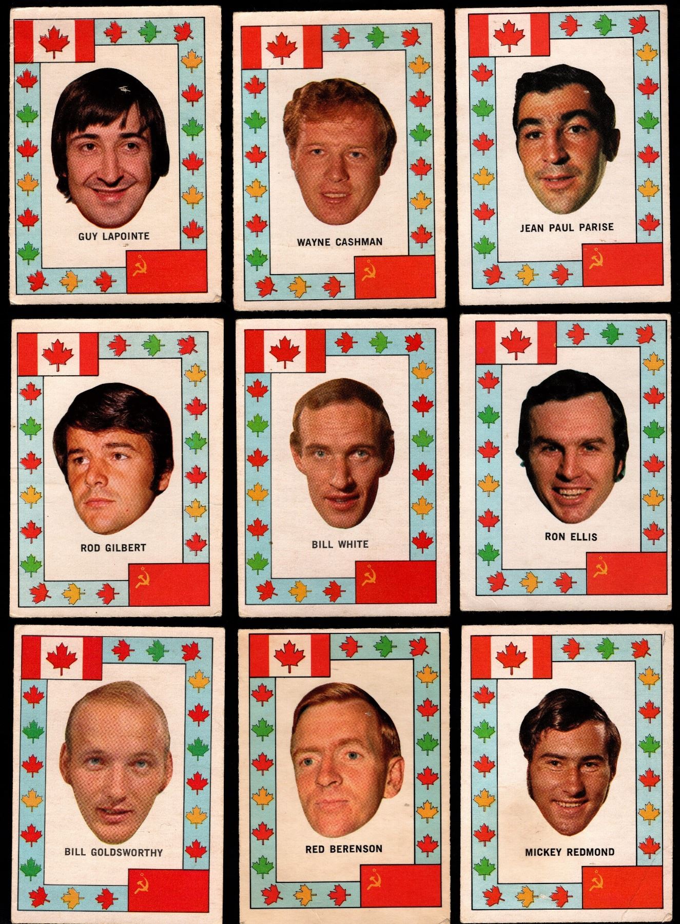 9 different inserts from the 1972-73 O-Pee-Chee hockey set featuring members of Team Canada from the Summit Series vs the Soviet Union. Overall grade is GD-VG.