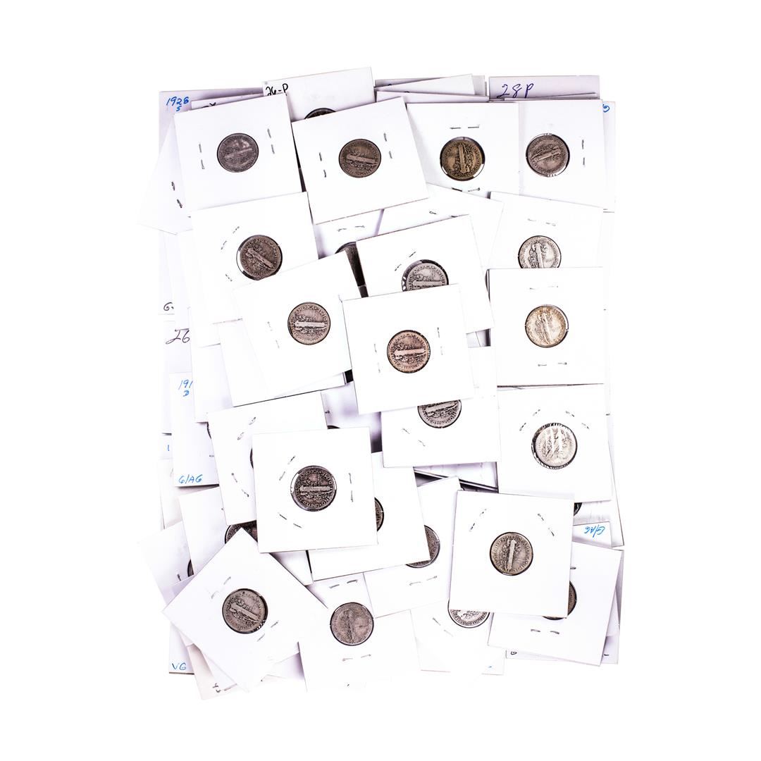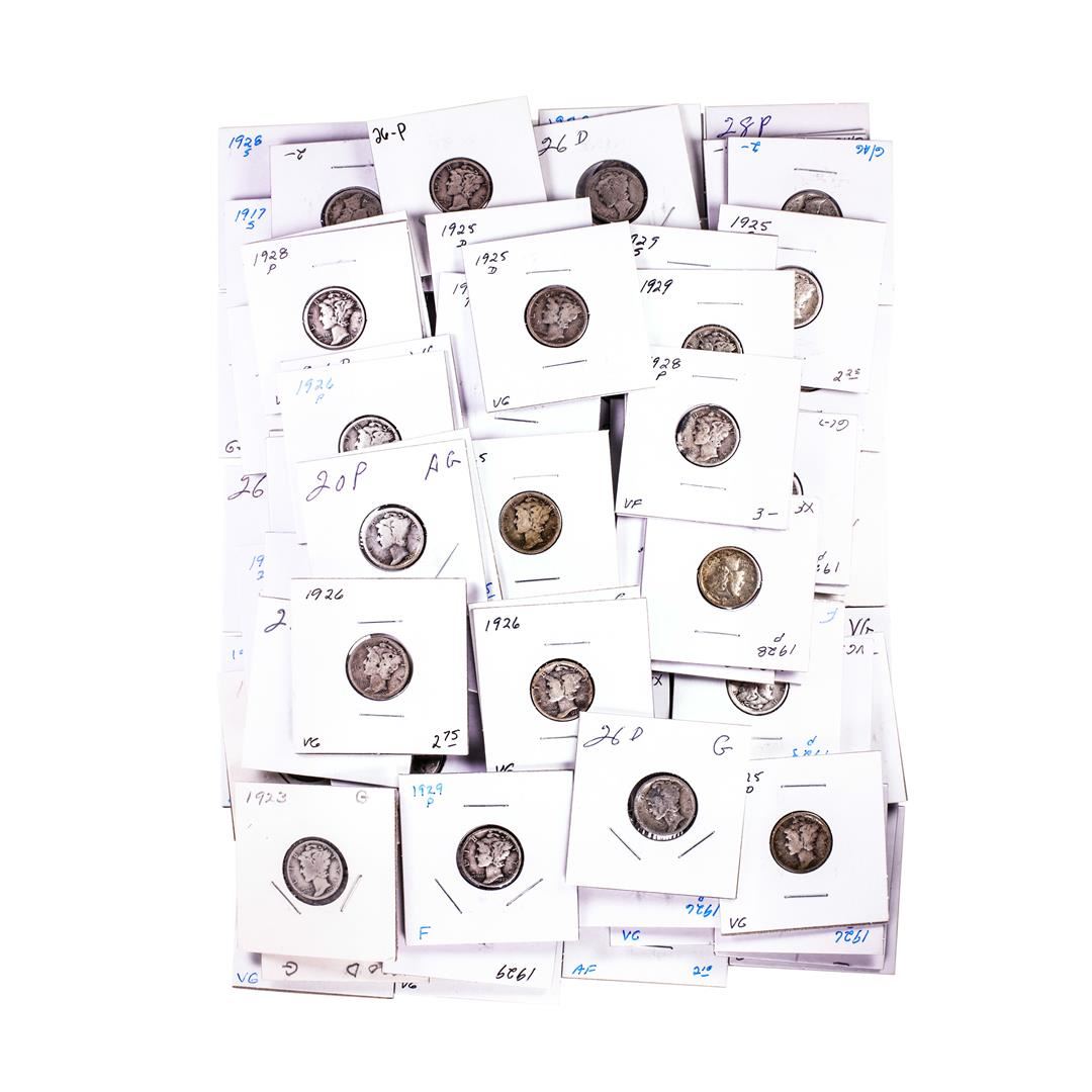 One Lot of (90) Assorted Date Mercury Dime Coins.