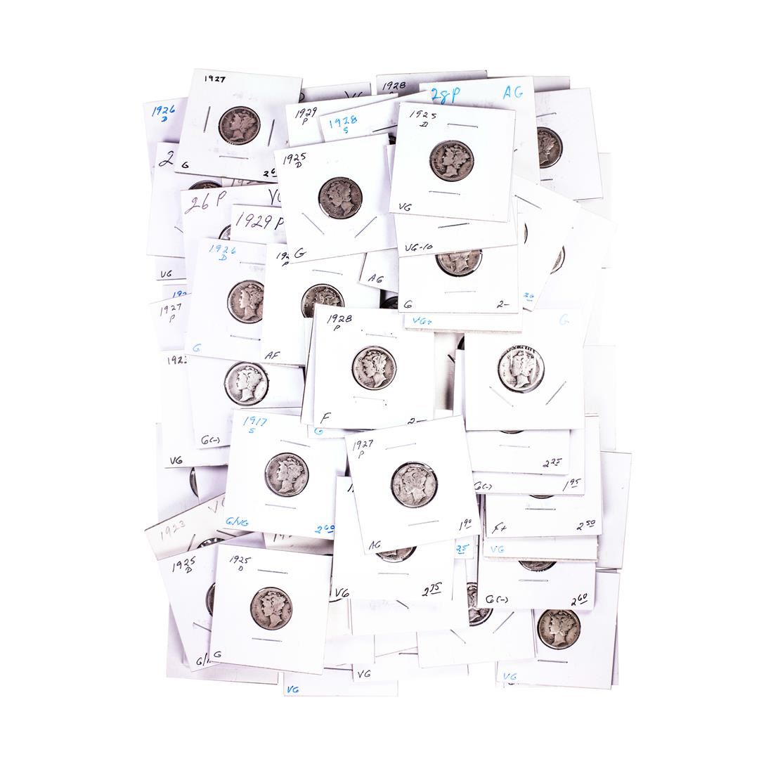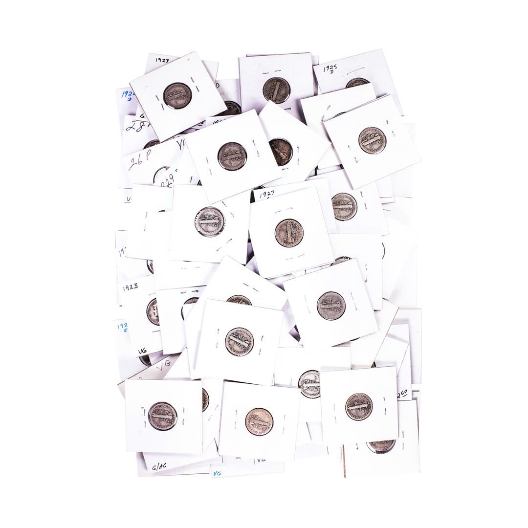One Lot of (90) Assorted Date Mercury Dime Coins.