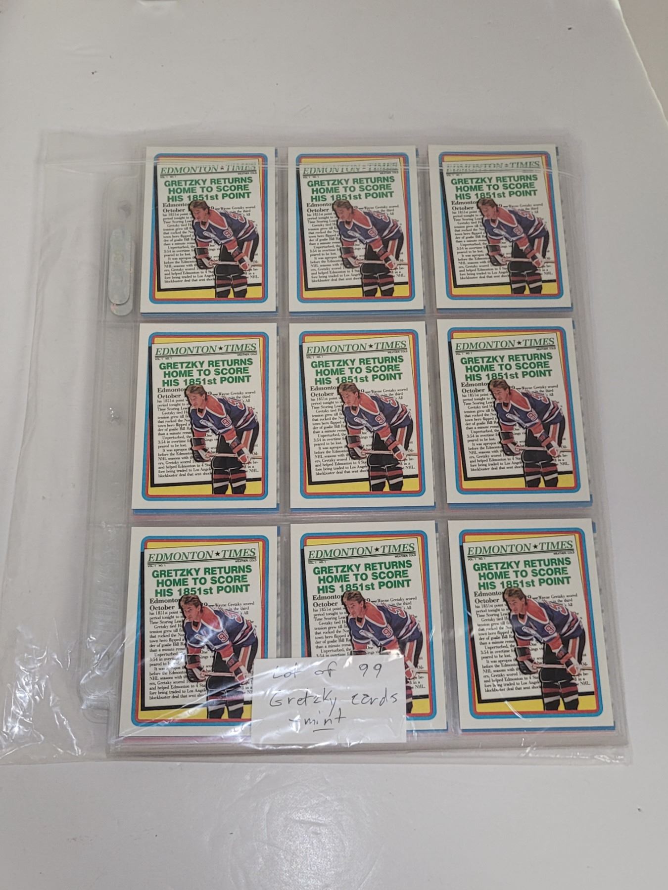 Lot of 99 Wayne Gretzky Hockey Cards in Sheets - 11 Sheets in Total