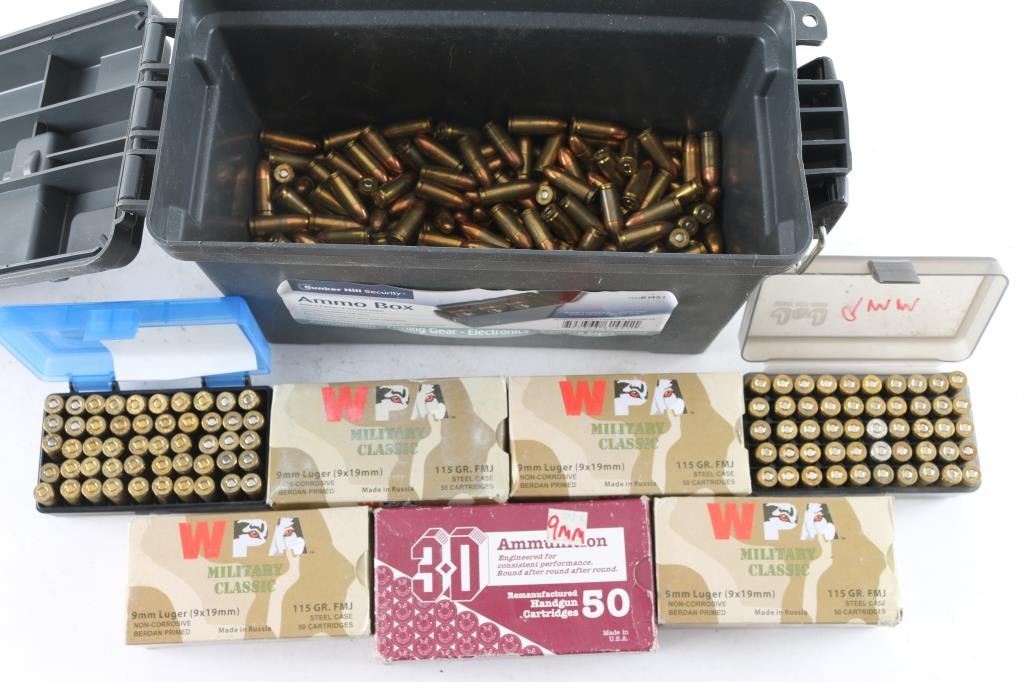 Approx. 550 rounds of 9mm ammunition. Approx. 200 rnds of factory new WPA 115 Gr. FMJ; approx. 150 rnds of reloads & the rest are loose rounds. All in plastic ammo can.