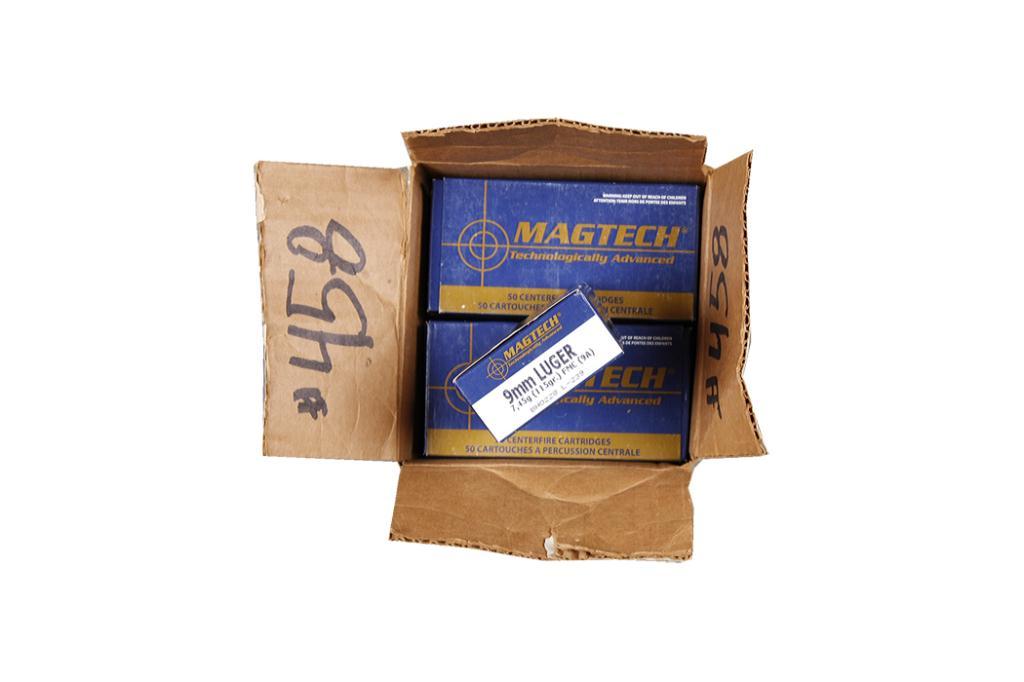 Lot of 9mm Luger Magtech 115 gr Ammo Consists of 9 boxes, 50 rds ea, Magtech 115 gr FMCConsists of 9