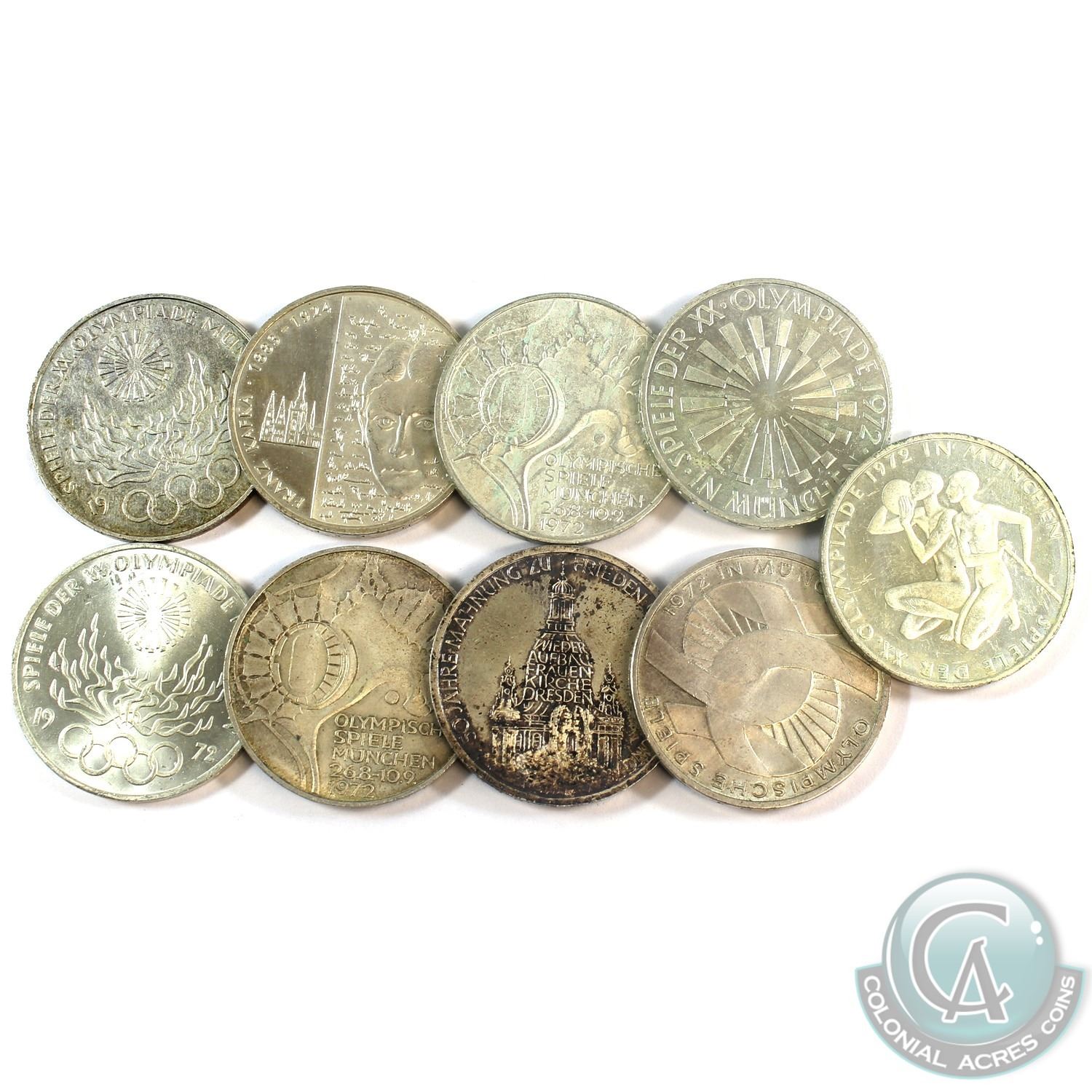 Lot of 9x Germany 10 Mark Silver Coins. You will receive 145 grams total of silver coinage.