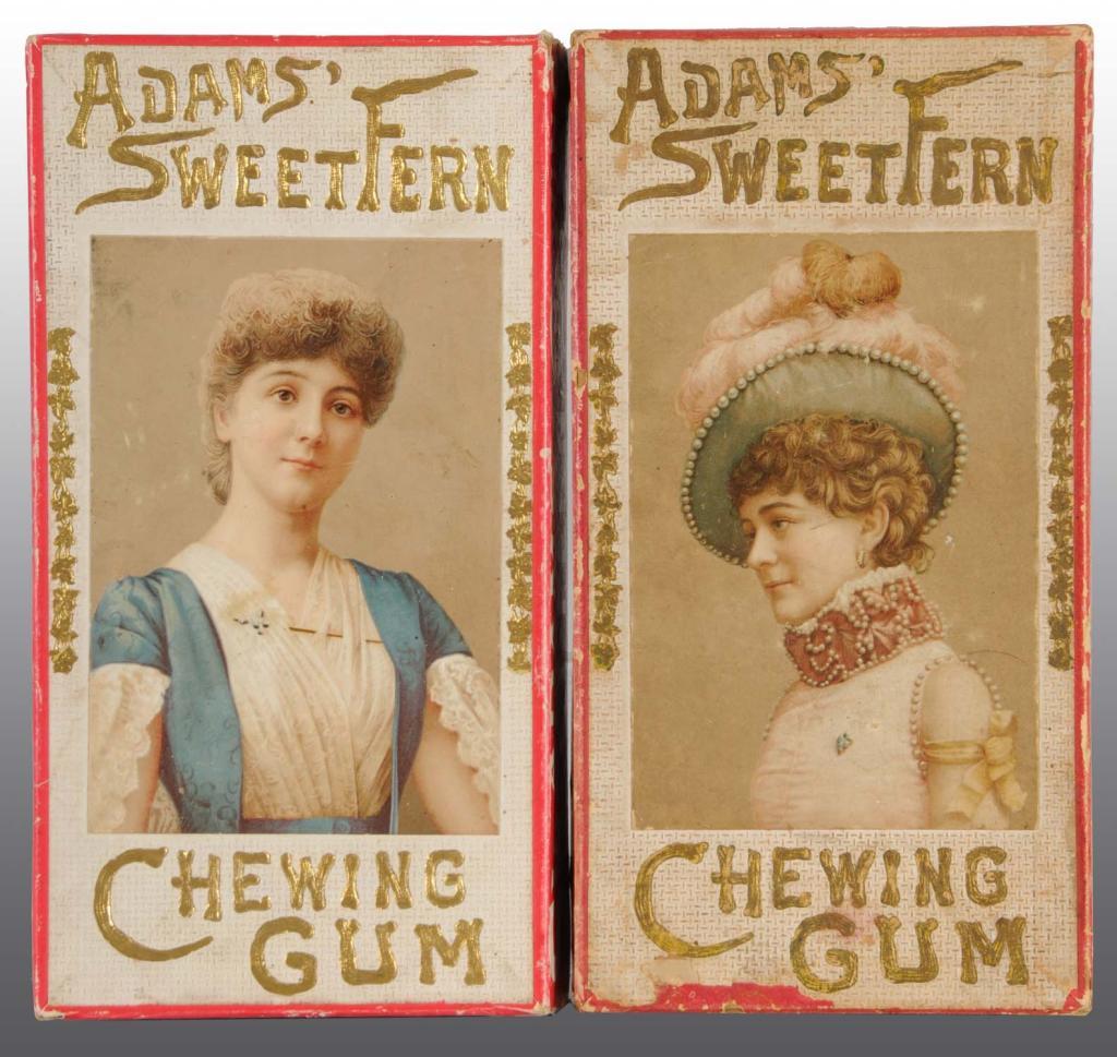 Description Includes one Sweet Fern depicting a woman with stamp inside and strong graphics. Also includes another Sweet Fern box in a lesser condition value with staining, paper loss, and wear. Both boxes have pencil marks. Last item in lot is a chewing gum wrapper for Adam's Sweet Fern. Condition (Good - Excelelnt). Size Both: 4 - 3/4" x 8 - 3/4" x 1 - 1/4".