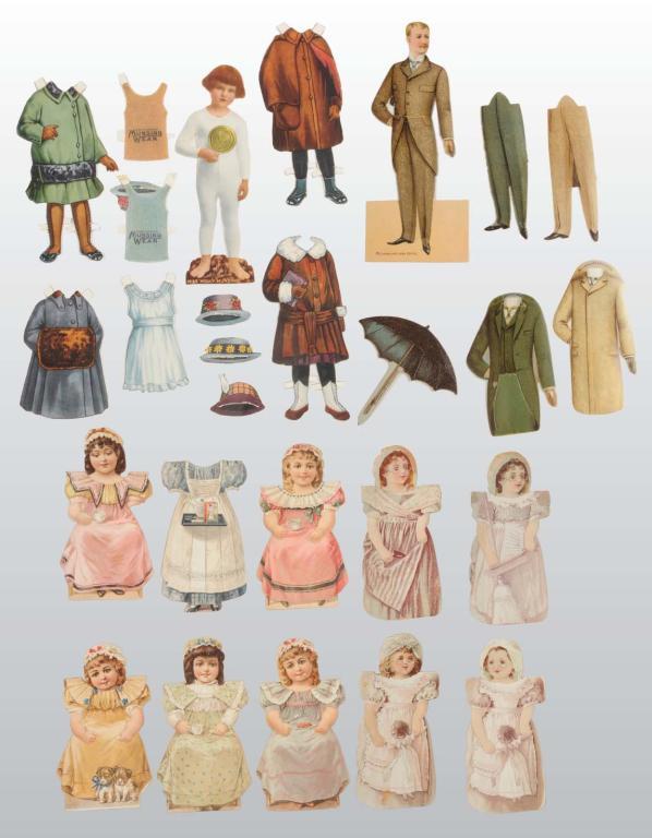 Description ND. The lot includes dolls from McLaughlin Coffee, Lion Coffee, Prescott Piano, None Such Mince Meat, Munsingwear, Jayne's, etc. This lot is graded from good to fine.