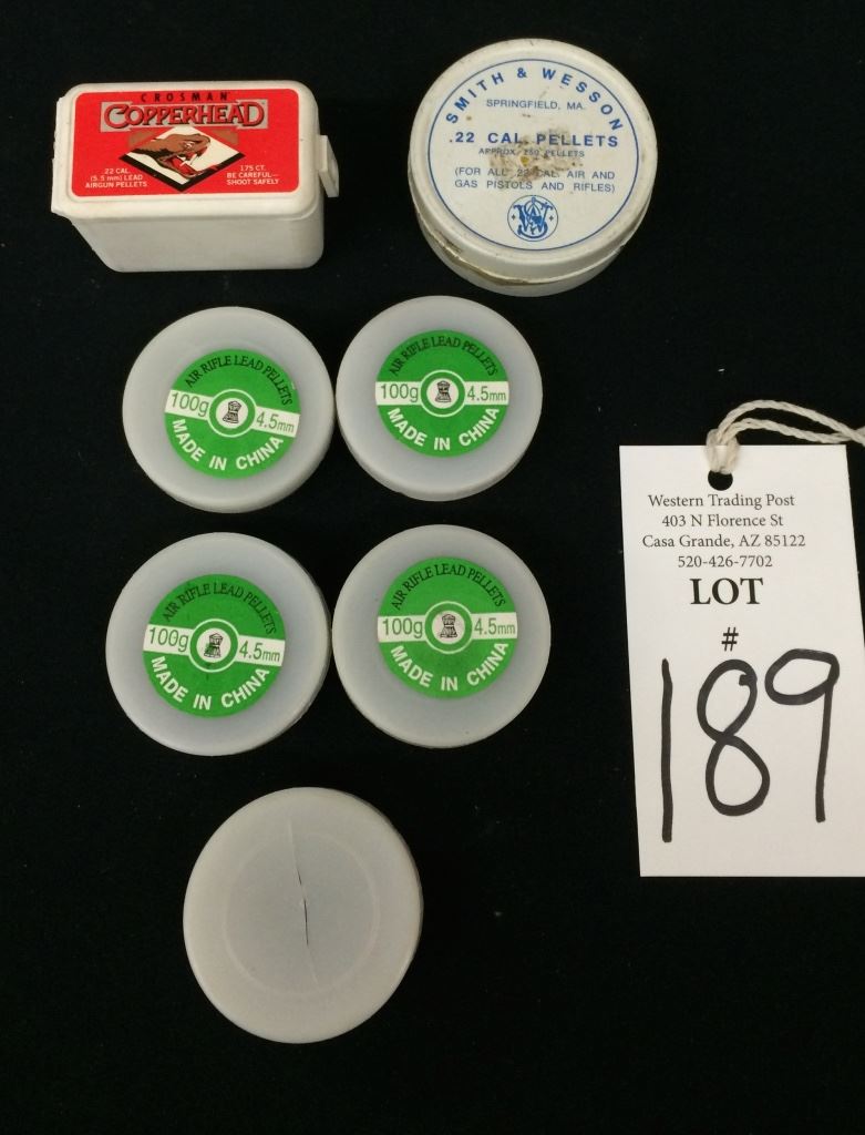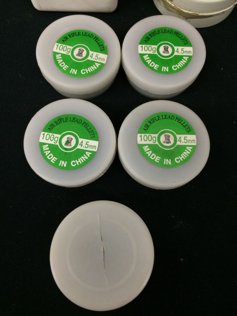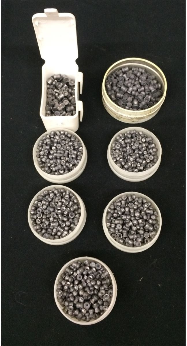 There are 5 containers of 4.5mm air rifle pellets and 2 containers of .22 cal. air rifle pellets. All 7 containers with hundreds of pellets all come for one money!