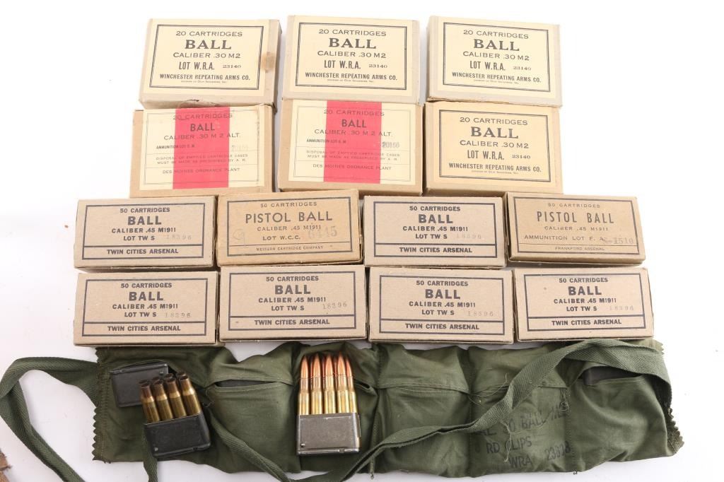 Includes: (375rds) .45ACP FMJ and (125rds) M2 30-06 FMJ. Factory boxes. ***Counts are approximate***