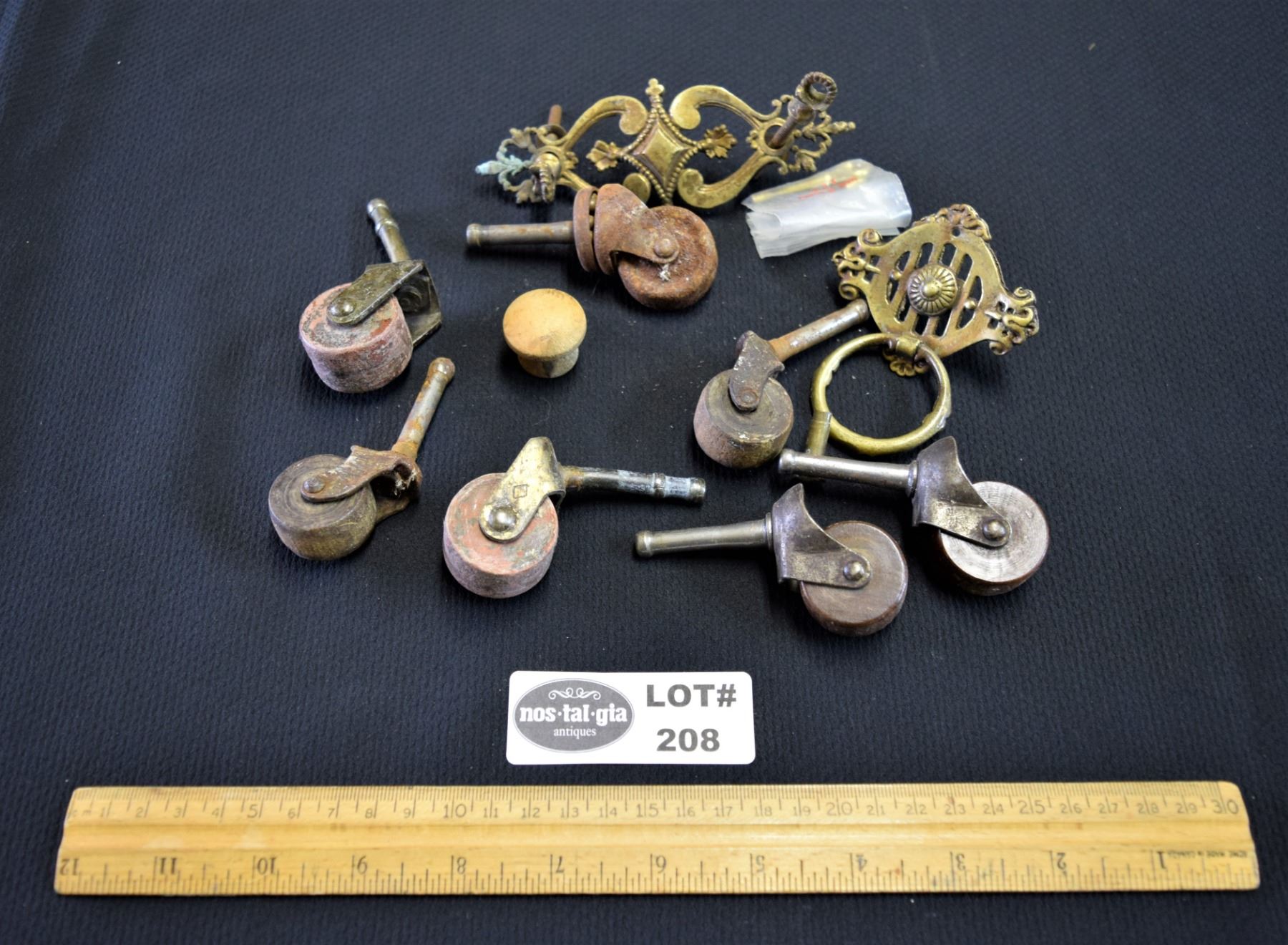 Brass Drawer Pulls, Wood and Metal Castors, etc