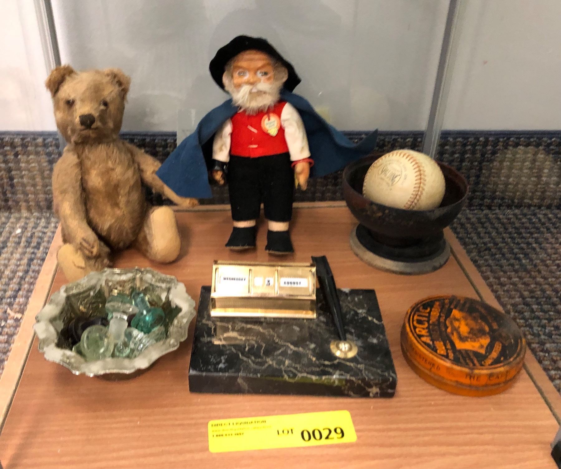 Lot of Antique Stuffed Toys, Baseballs, Desk Calendar, Bowls, Etc...