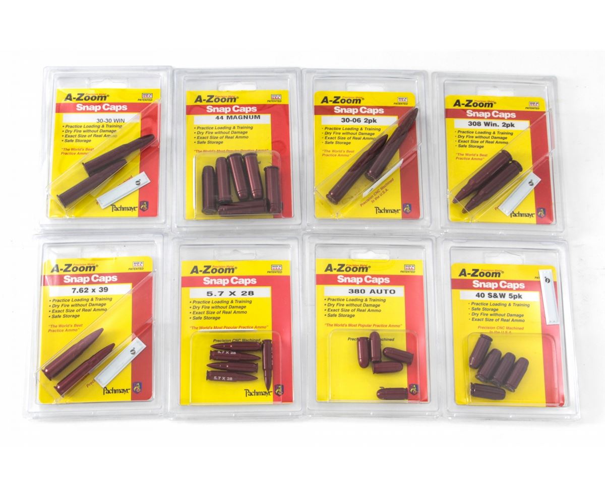 Lot of Approx. Forty-Five (45) A-Zoom Snap Cap Packages, for .380 Auto, 7.62x39, .44 mag., 5.7x28, .30-06, .30-30 Win., 16, 20 & 28 ga. All brand new in original packaging. Retails @ $250-$350/lot. (Field Time)